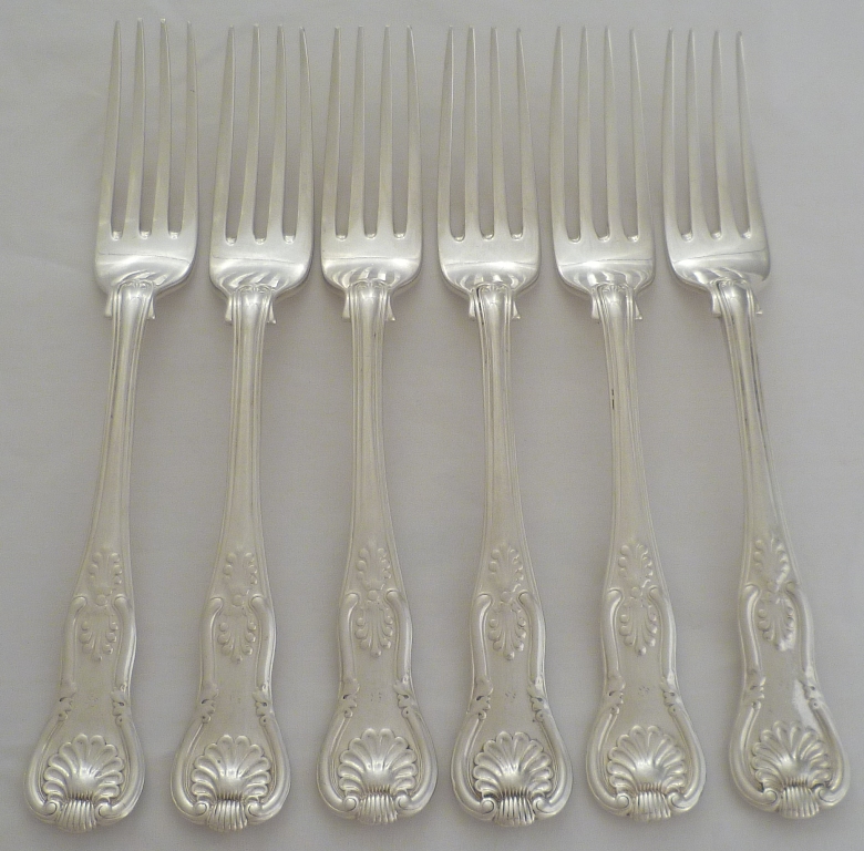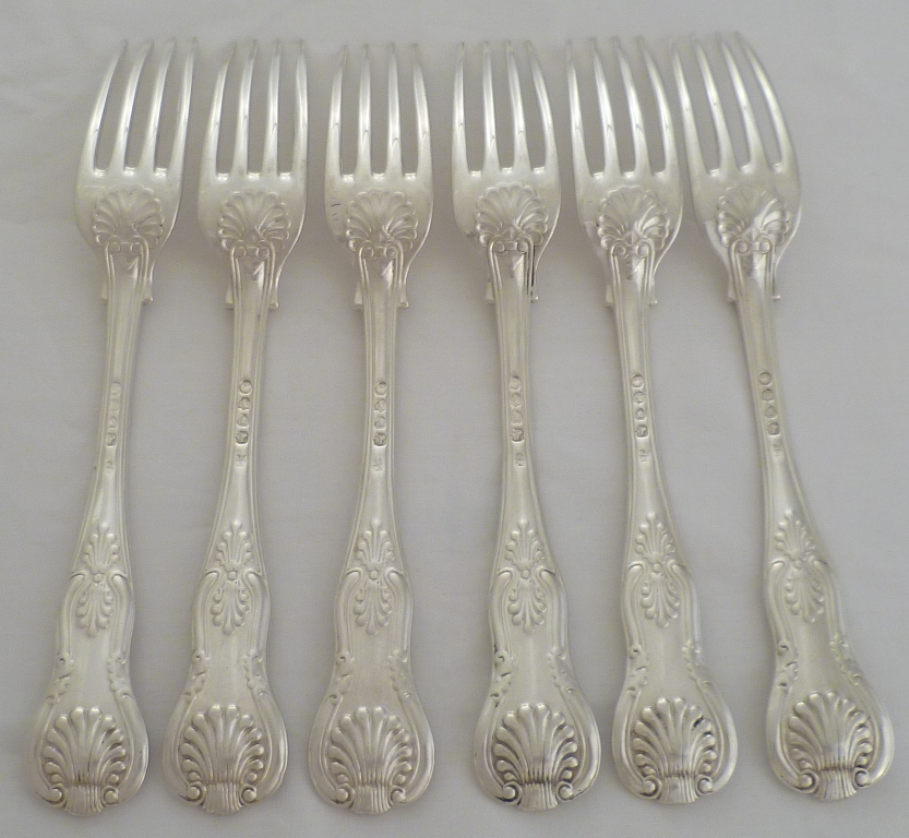DESCRIPTION | Six Victorian silver double struck King's pattern with diamond shell heel table forks. |