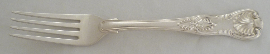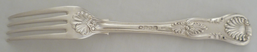 DESCRIPTION | One Victorian silver double struck King's pattern with diamond shell heel table fork with no engraving or erasure. |