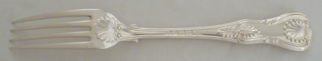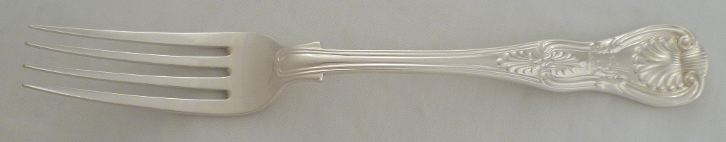 DESCRIPTION | Good Victorian silver double struck King's pattern with diamond shell heel table fork with a nice frontal crest engraving. |