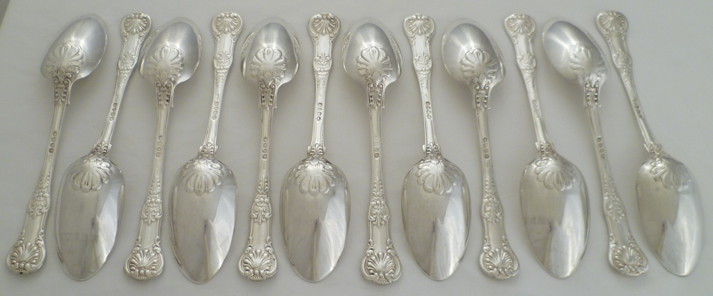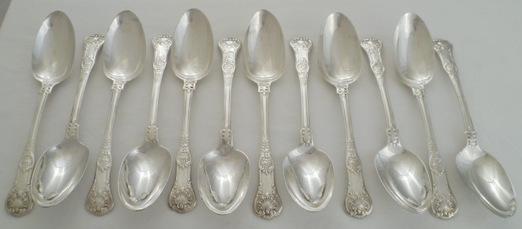 DESCRIPTION | Set of twelve Georgian silver double struck Queen's pattern table spoons with no engraving or erasure. |