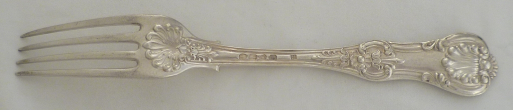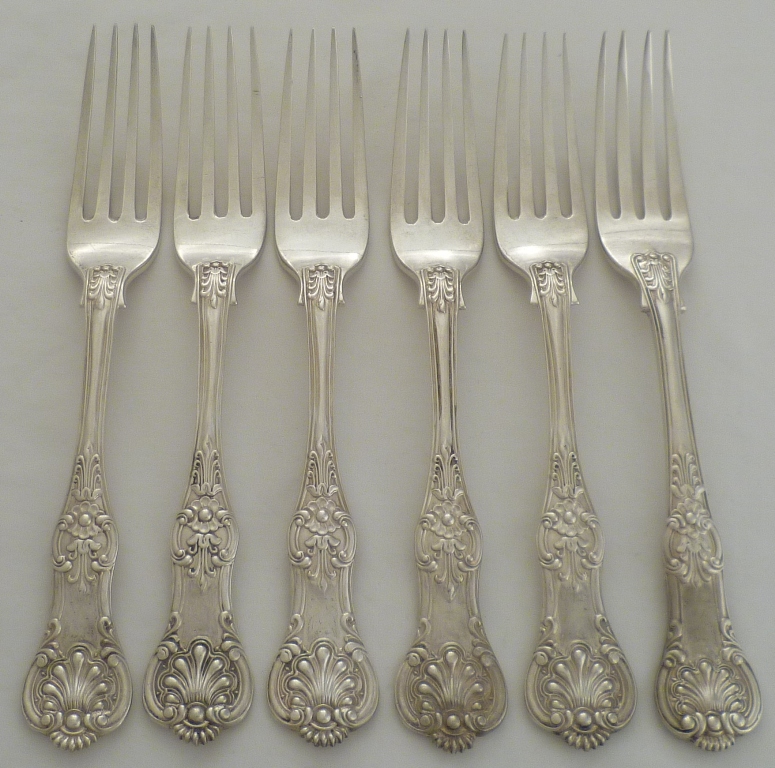 DESCRIPTION | Six silver double struck Queen's pattern table forks. |