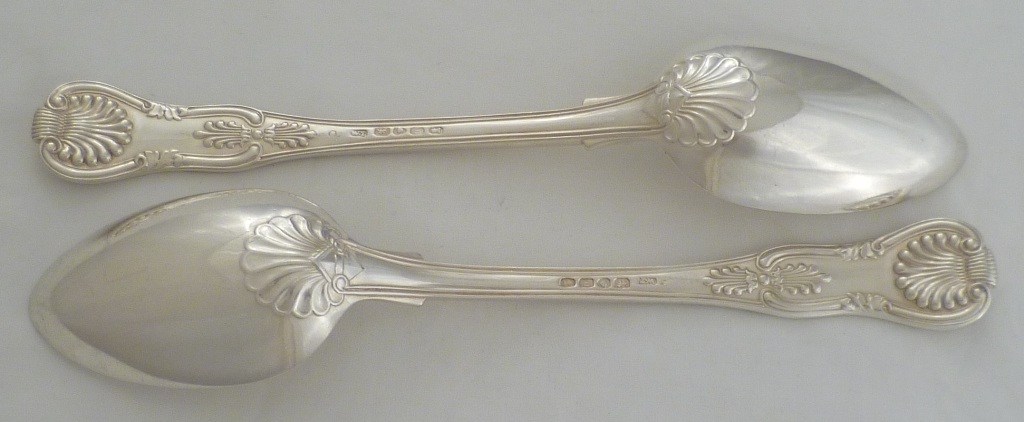 DESCRIPTION | Pair of Georgian silver double struck King's pattern with diamond shell heel table spoons. |