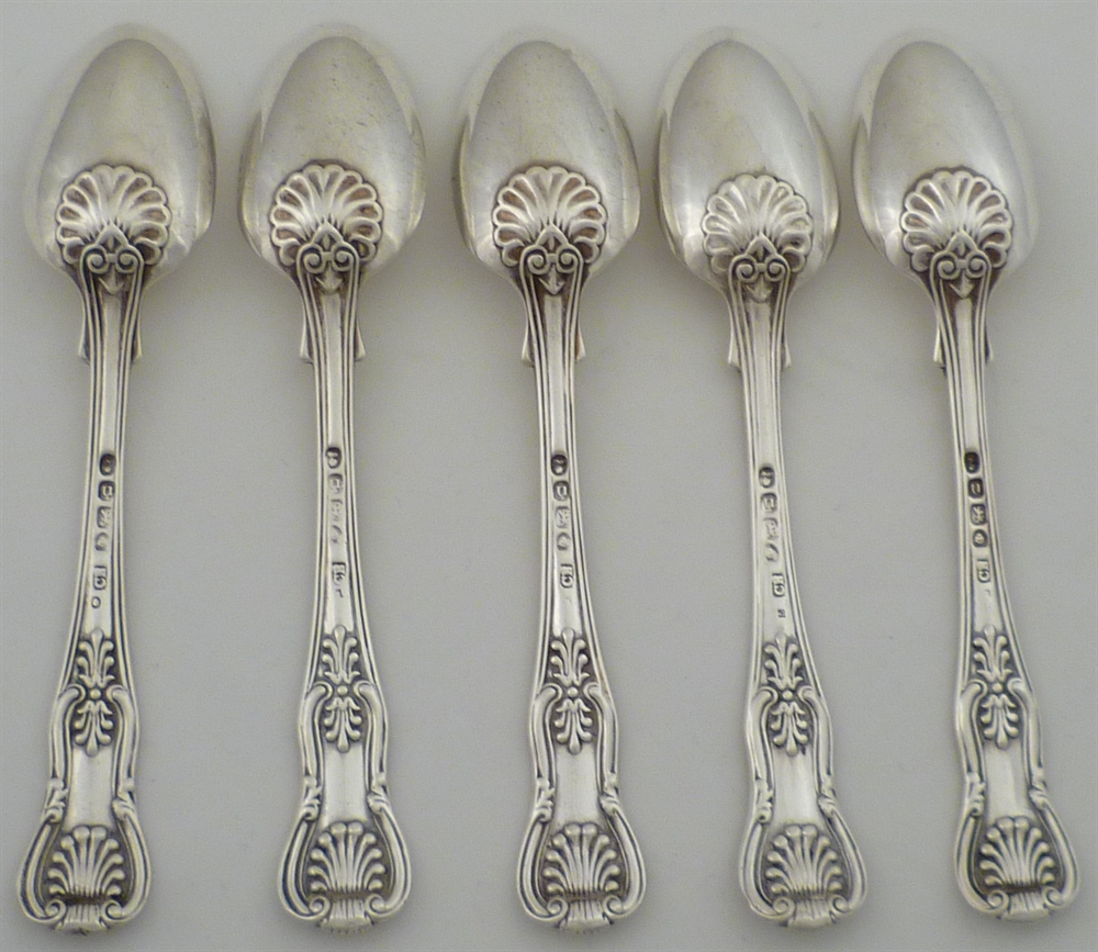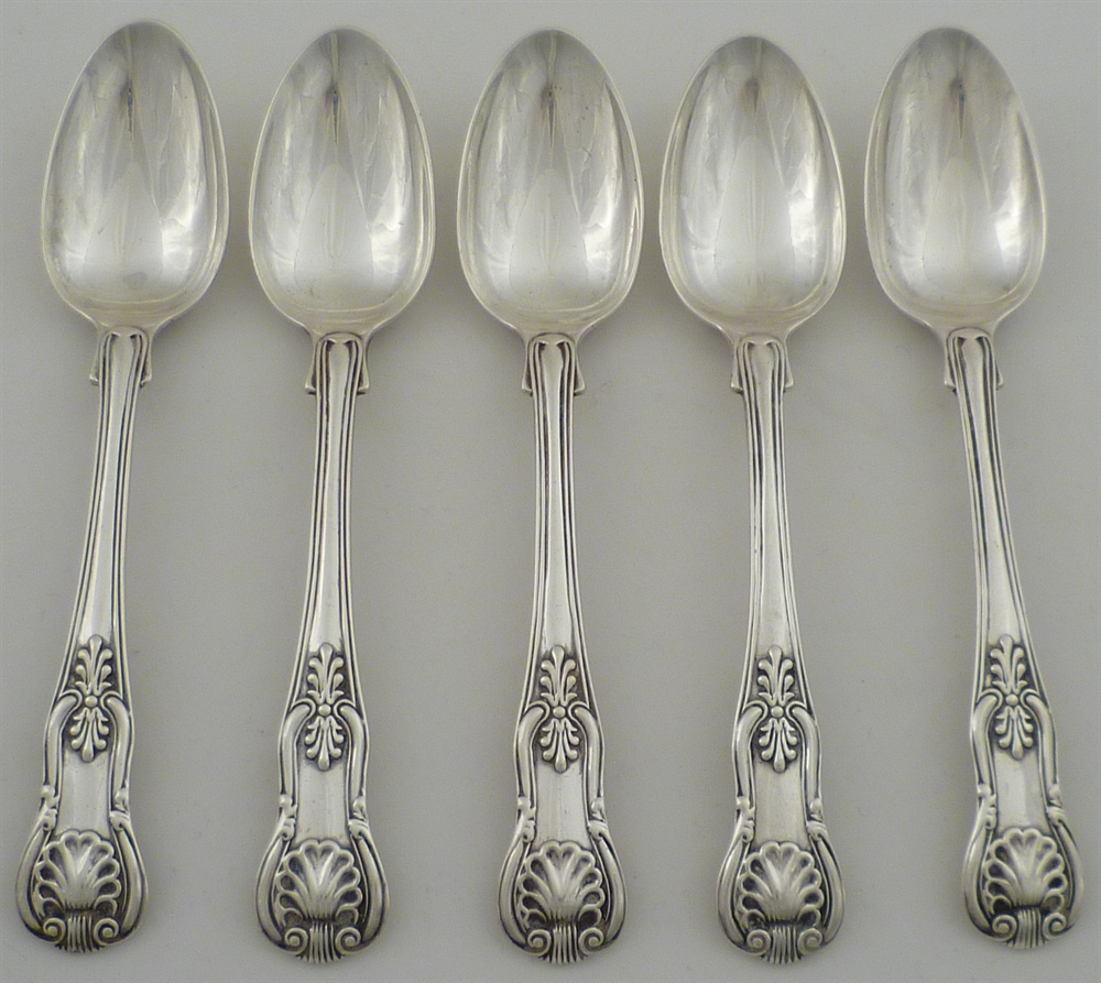 DESCRIPTION | Set of five Georgian silver King's pattern with diamond shell heel teaspoons. |