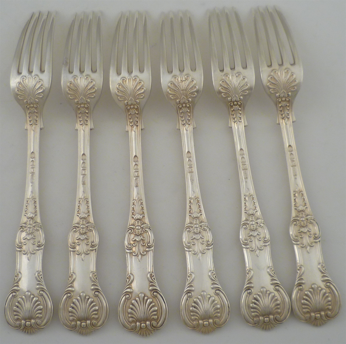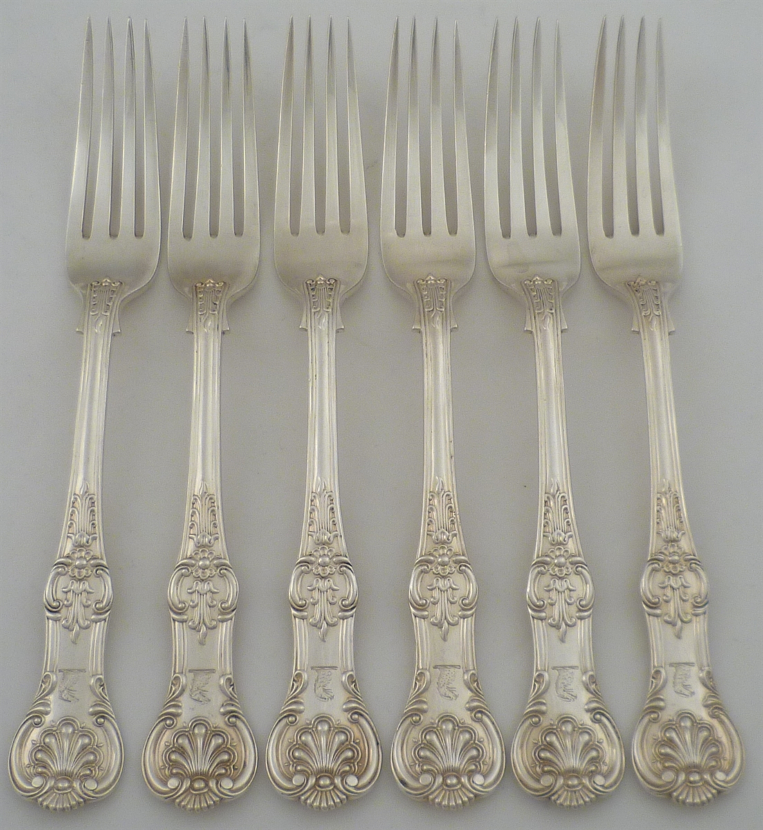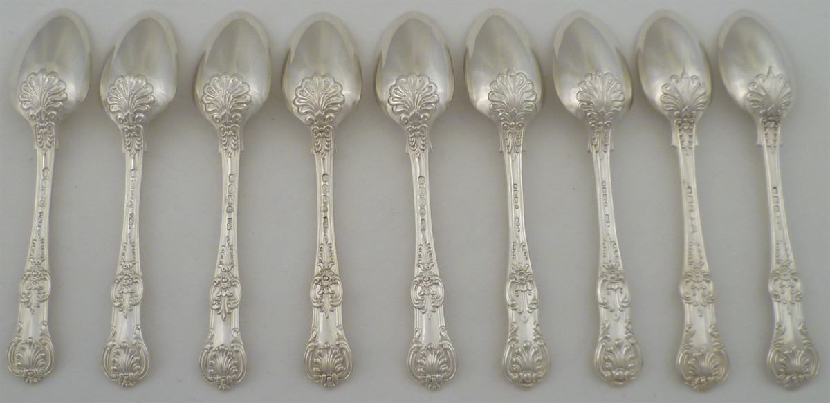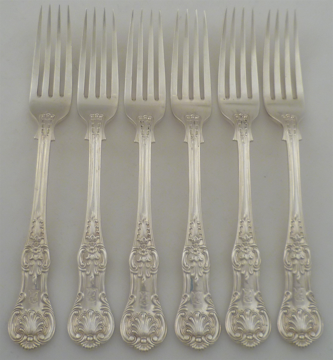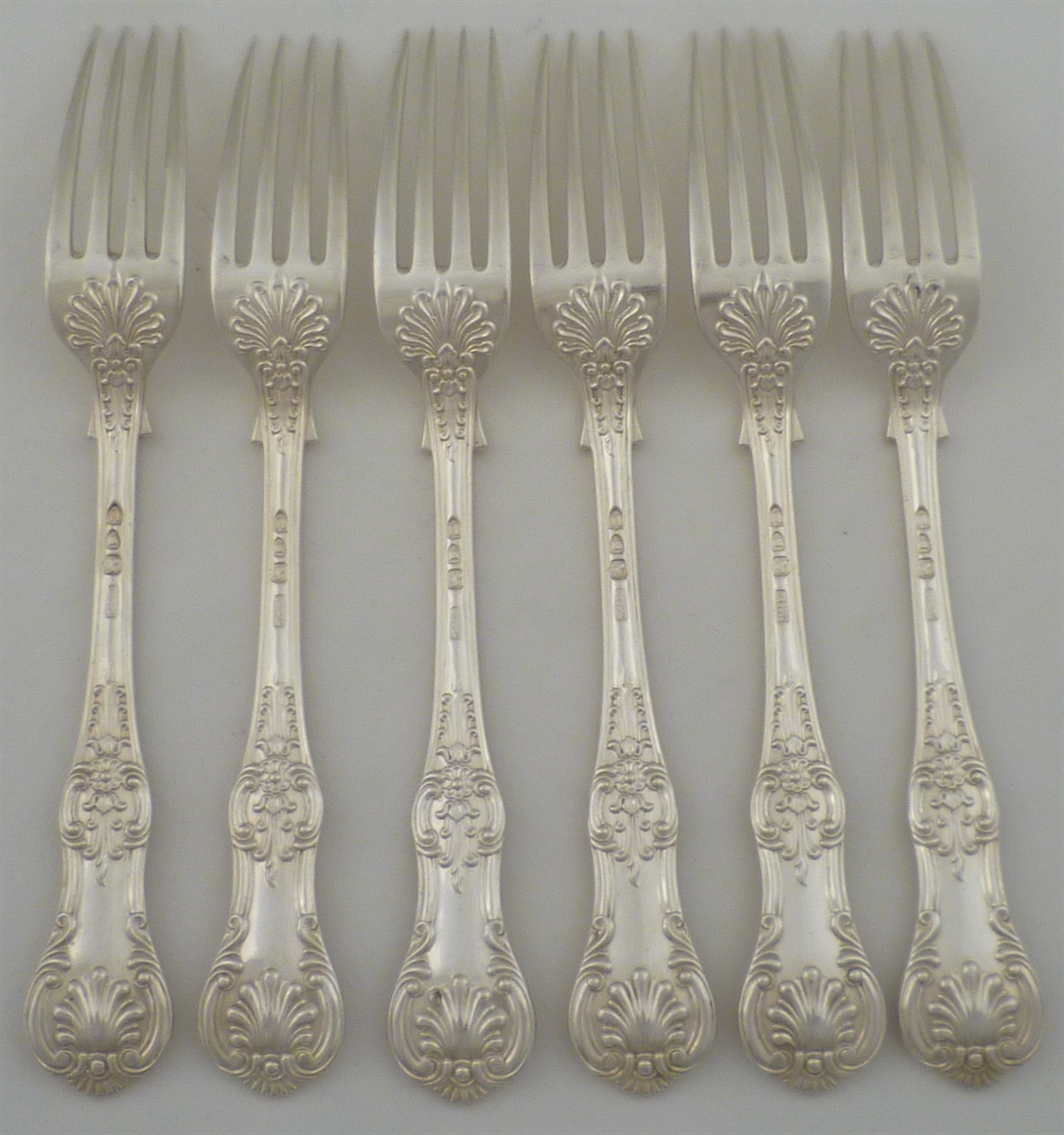 six table forks, six dessert spoons, six dessert/salad forks, nine teaspoons.