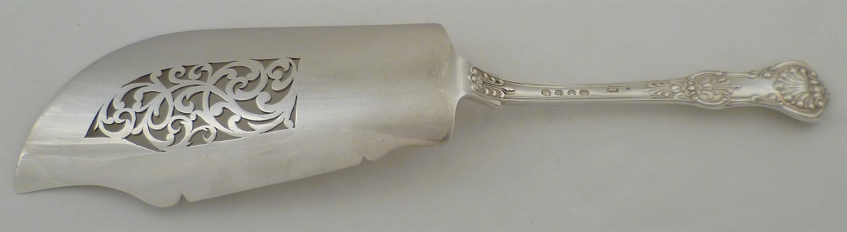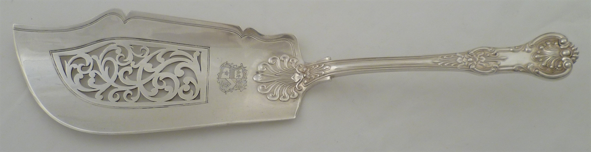 DESCRIPTION | Superb early Victorian silver Queen's pattern fish server with a wonderful frontal engraving and hand pierced decoration to the blade.. |