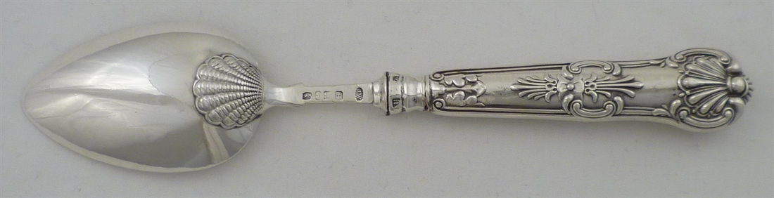 DESCRIPTION | William IV silver Queen's Oyster Back pattern spoon with a traditional pitch loaded handle. |