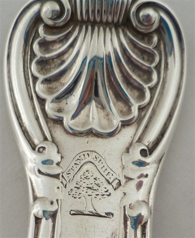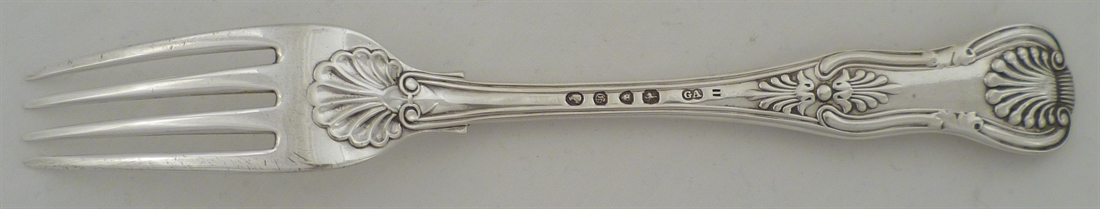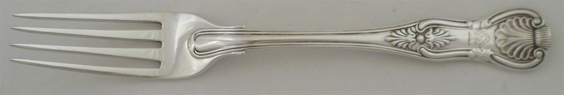 DESCRIPTION | Victorian solid silver King's pattern table fork with a frontal crest and motto engraving. |