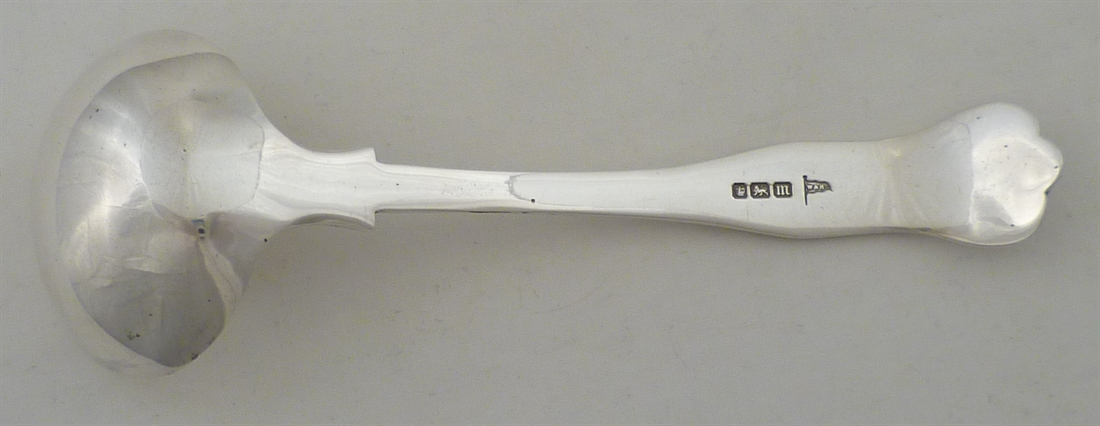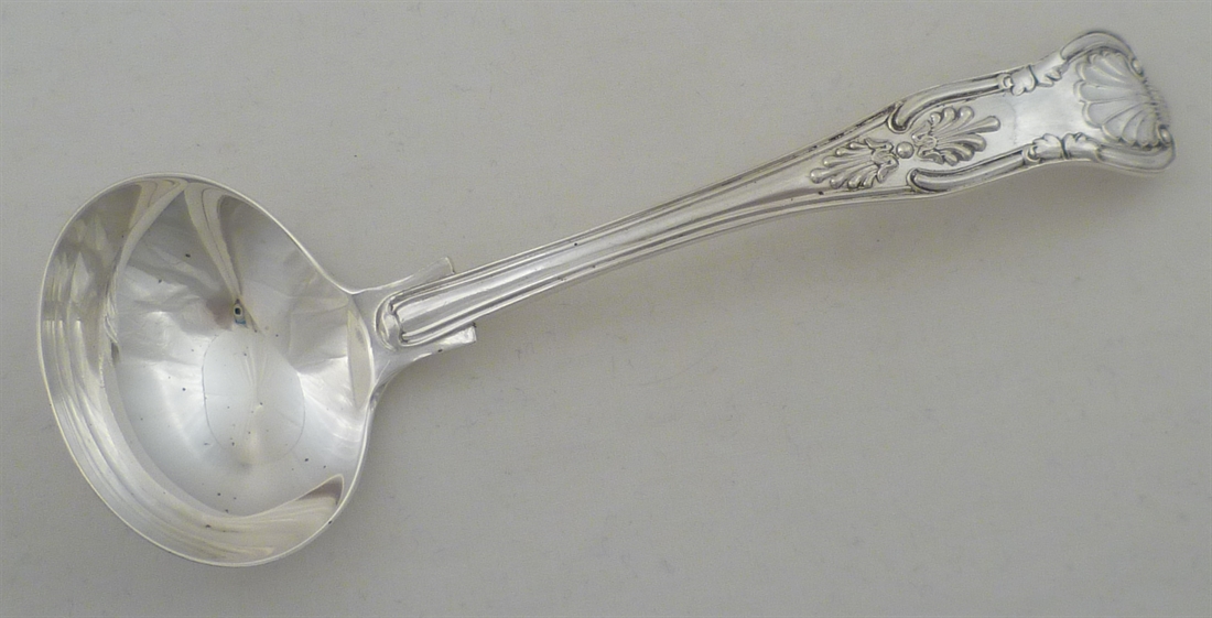 DESCRIPTION | Edwardian solid silver single struck King's pattern sauce or cream ladle with no engraving or erasure. |