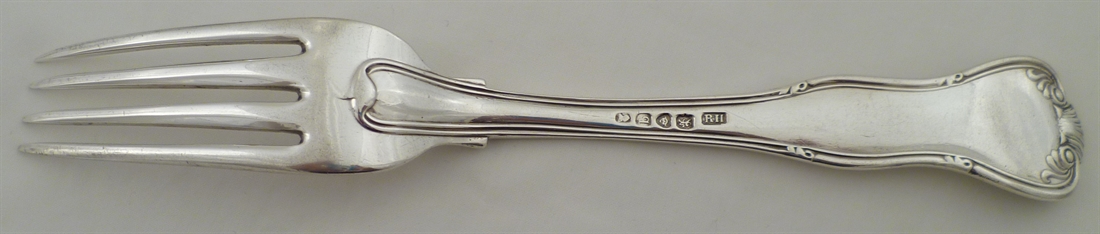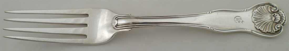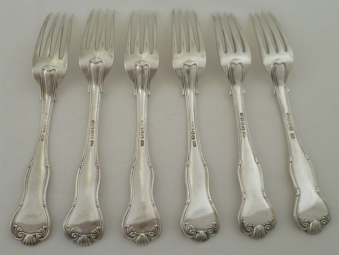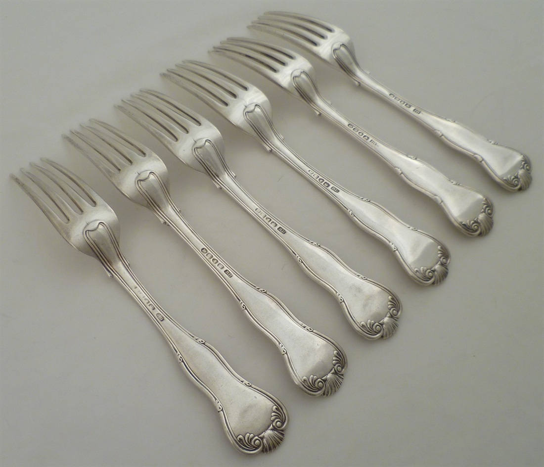 DESCRIPTION | Six very rare William IV solid silver King's Husk with Union Shell Heel pattern table forks with a frontal initial engraving. |