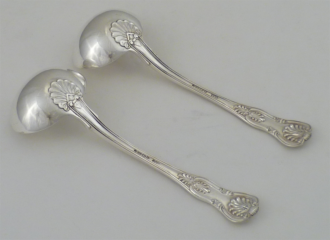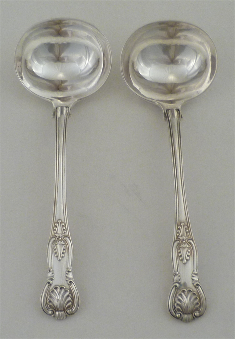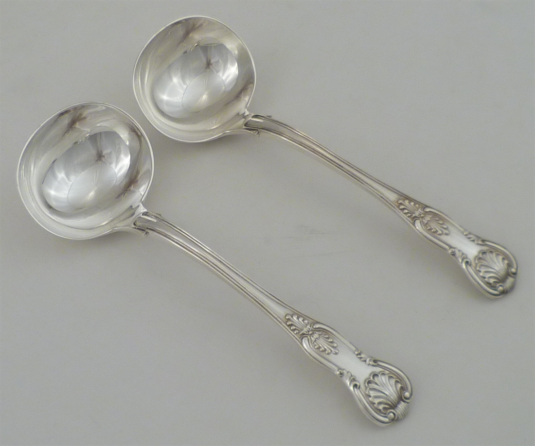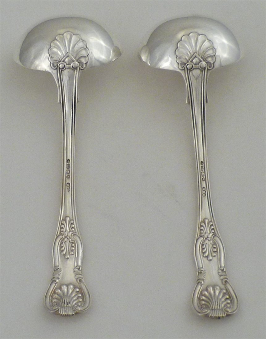 DESCRIPTION | Excellent pair of Victorian solid silver King's pattern sauce ladles with no engraving or erasure. |