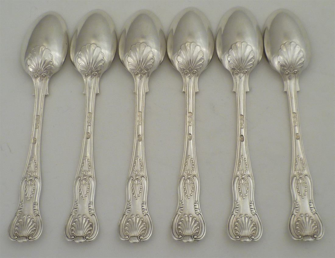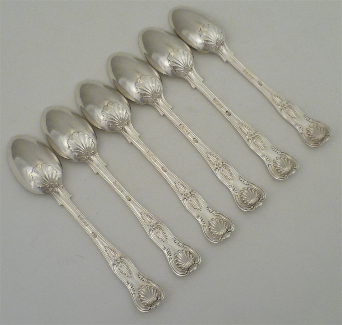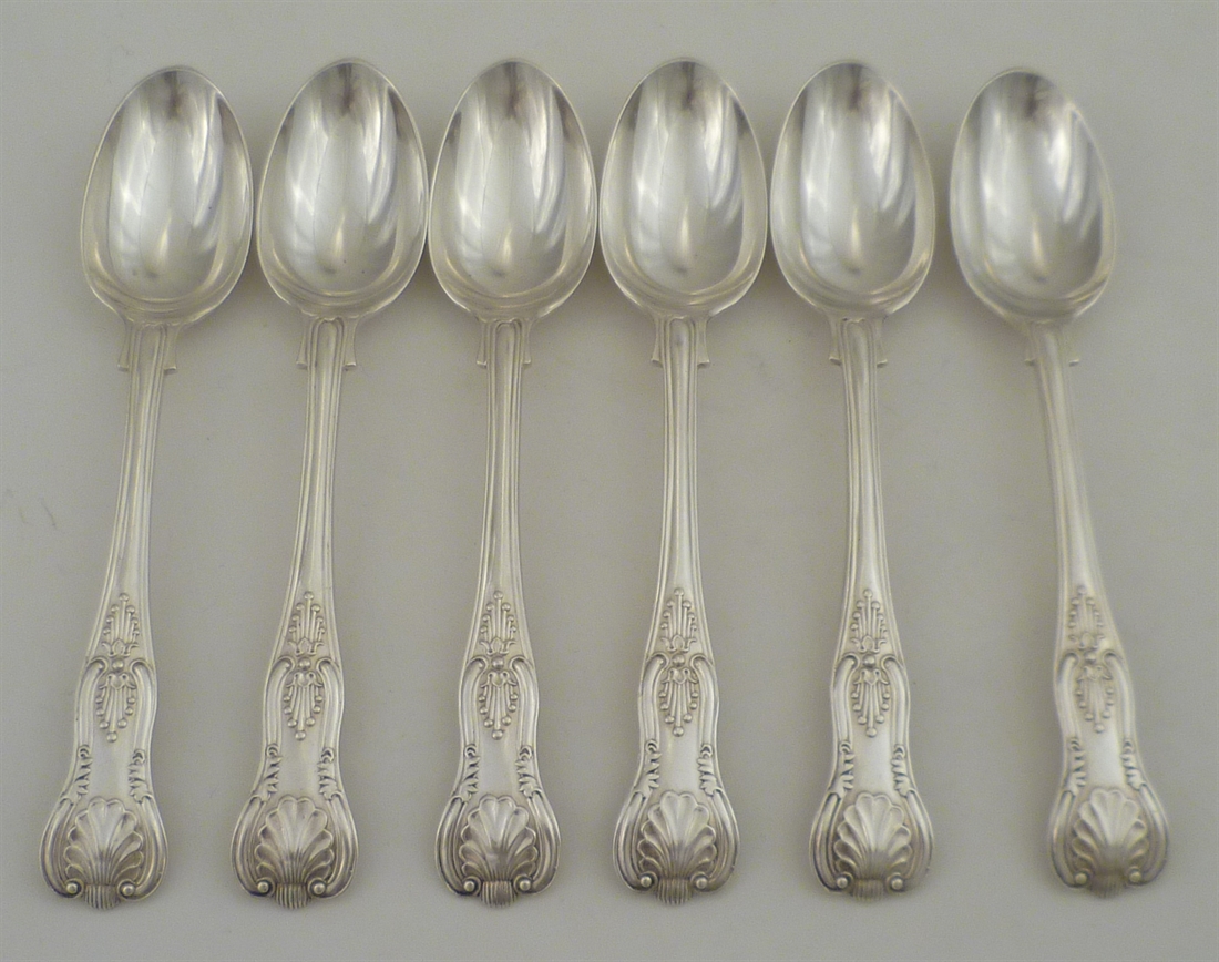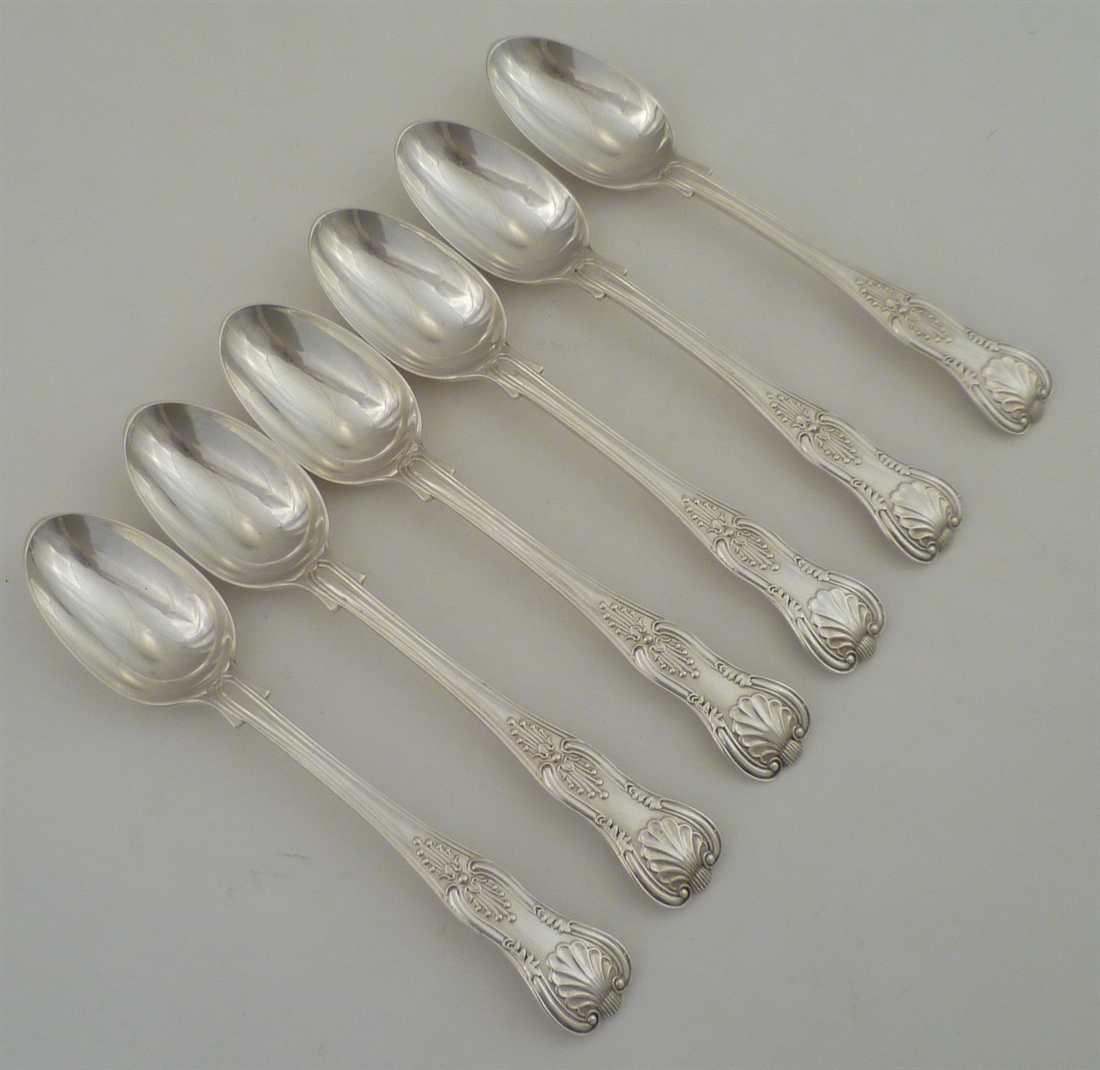 DESCRIPTION | Set of six excellent Victorian solid silver double struck King's pattern teaspoons with no engraving or erasure. |
