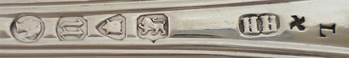 CONDITION | heavy, long and level tines, no engraving or erasure. There are some grey marks to the front of the two central tines on one fork that I have highlighted using special lighting. This is fire-stain that was incorporated into the metal at the ingot stage. I have polished to reduce it by 50% but decided to leave the remainder as I do not know how deep it goes, much like the ripple in a raspberry ripple ice cream. Under most normal lighting the stain is not visible. |