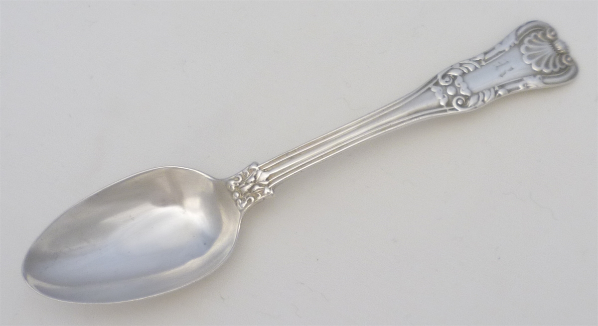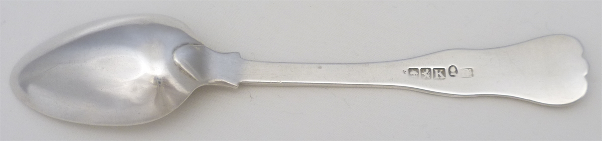DESCRIPTION | Scarce Scottish Georgian solid sterling silver single struck King's variant pattern teaspoon with a frontal engraving. |