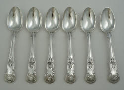 Six 5 ¾" Victorian Silver King's Teaspoons, London 1843, William Eaton, 144mm, 221g. |