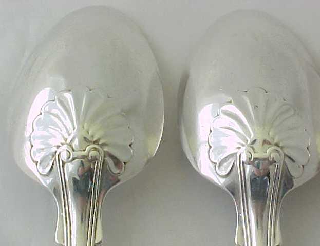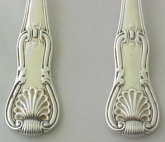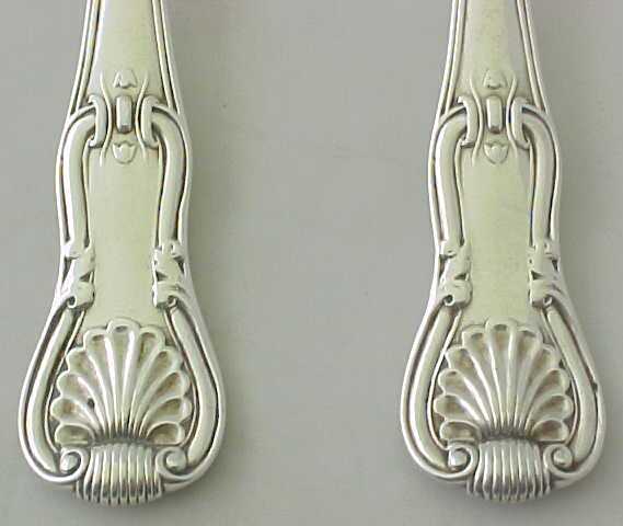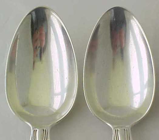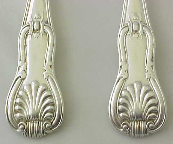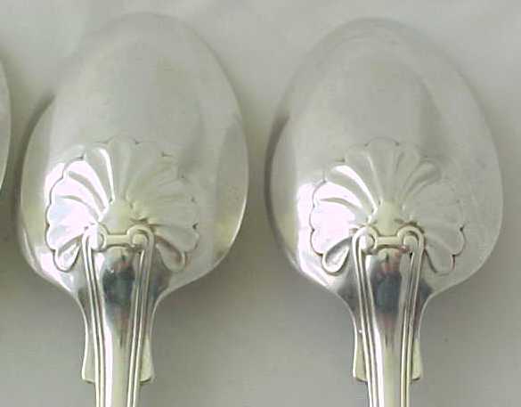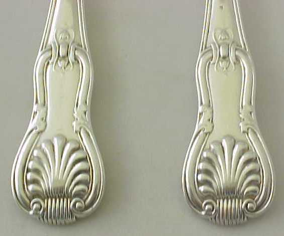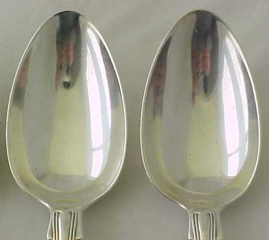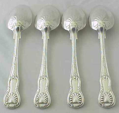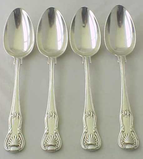 Four Georgian silver double struck King's Hourglass pattern table spoons with later French import marks. |