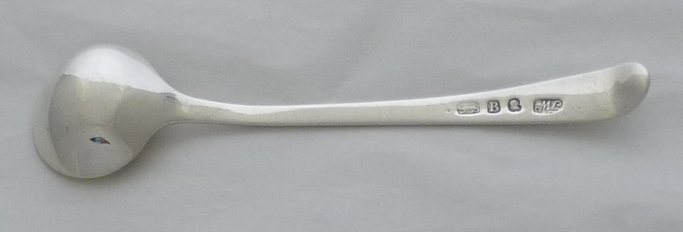 Georgian silver Old English pattern salt spoon with a gilded bowl. |