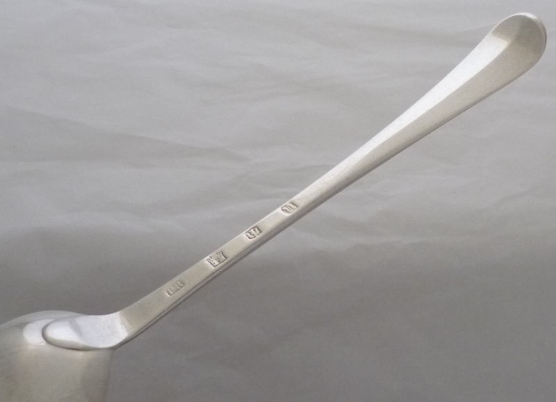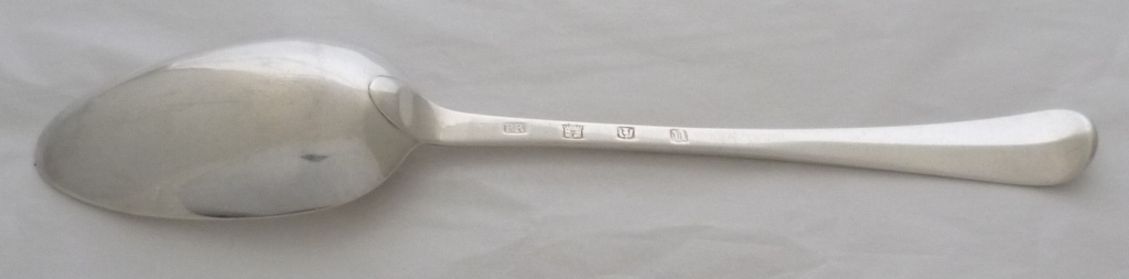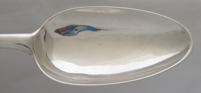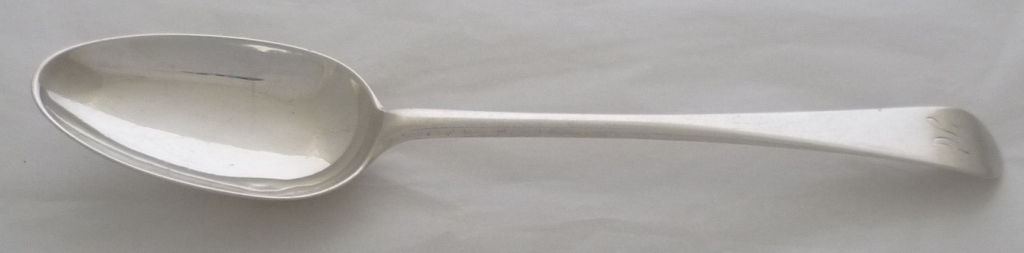 Superb Scottish Georgian silver Old English pattern table spoon with extended central rib to the back of the stem and beautiful bottom struck well preserved hallmarks. |