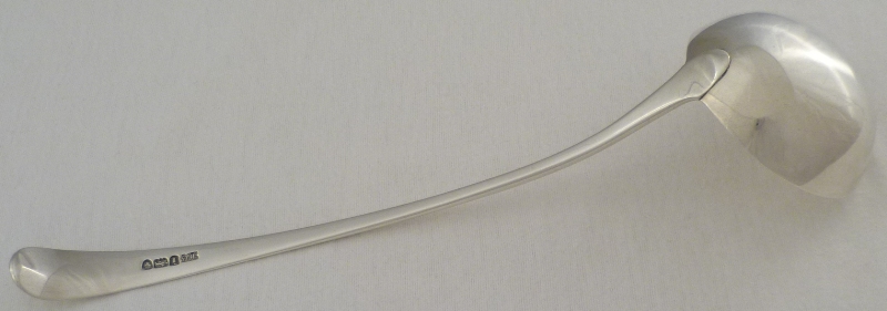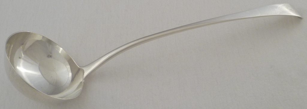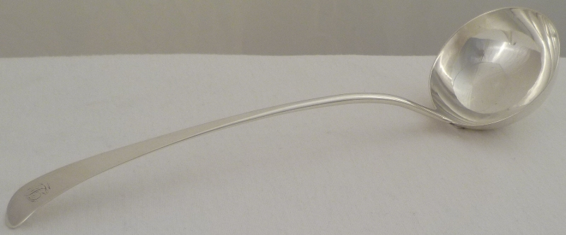 DESCRIPTION | Georgian silver Old English pattern soup ladle with a round bowl, initial engraved terminal and perfect hallmarks. |