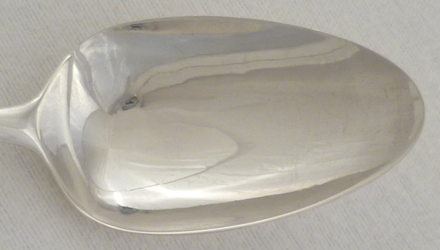 DESCRIPTION | Georgian silver Old English pattern table spoon, engraved '14' to the drop and with a possible well executed erasure to the terminal. |
