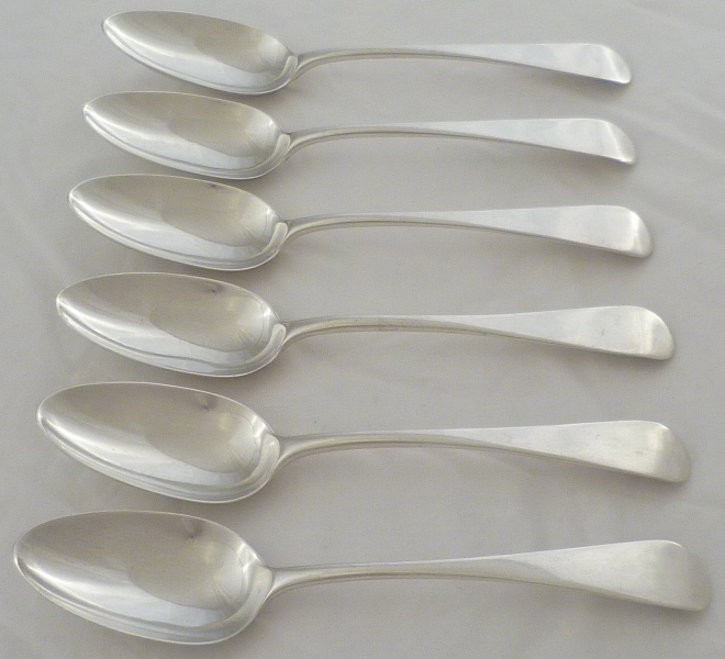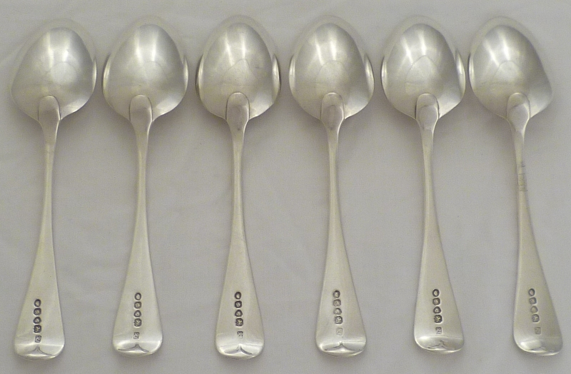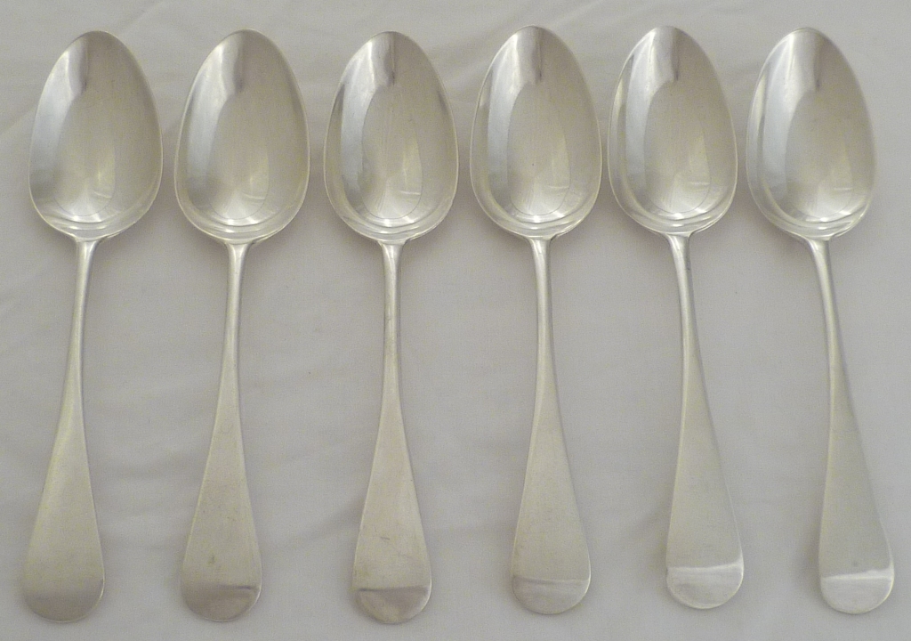 DESCRIPTION | Six William IV silver Old English pattern dessert spoons with no engraving or erasure. The matching table forks are available here m5514 |