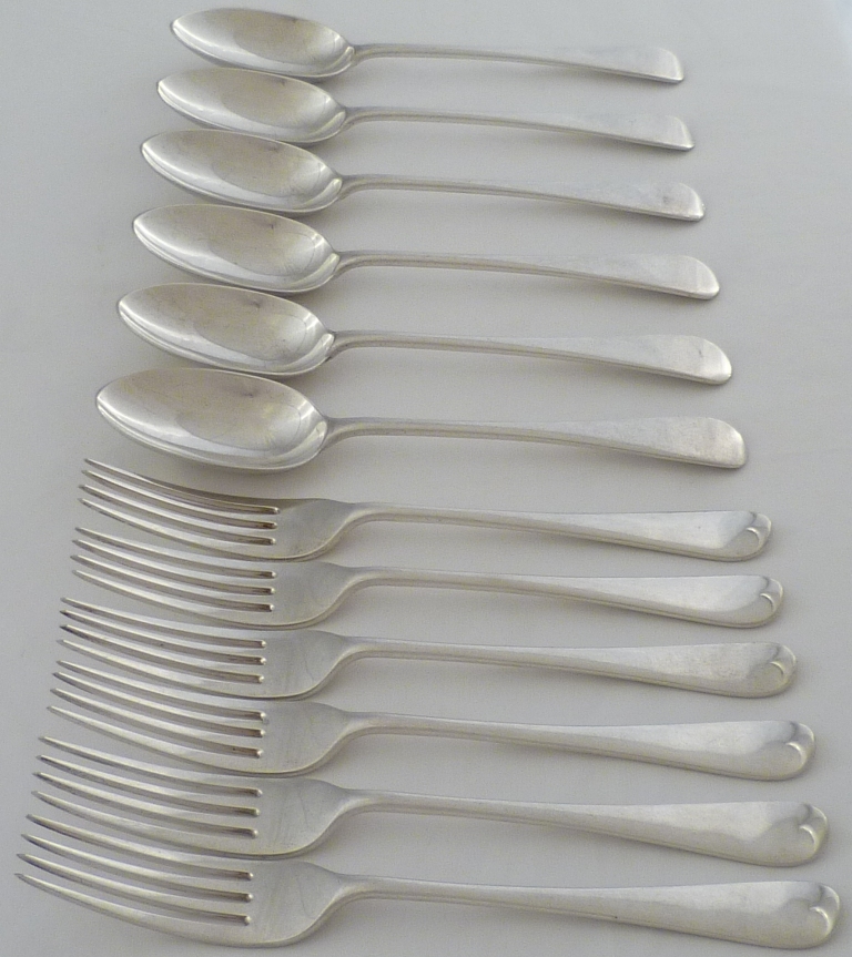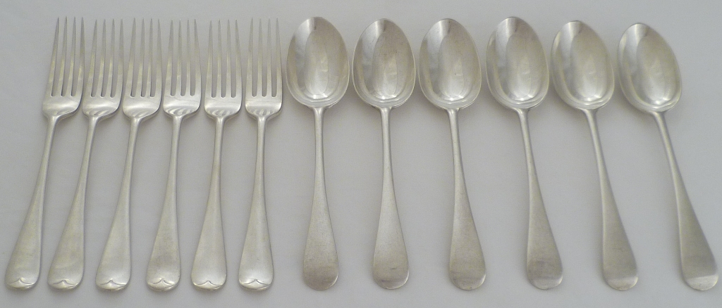 DESCRIPTION | Edwardian silver Old English pattern dessert service of six spoons and six forks. |
