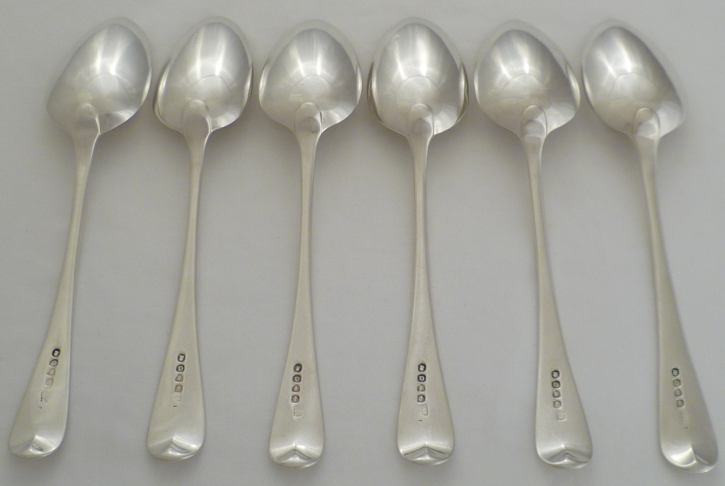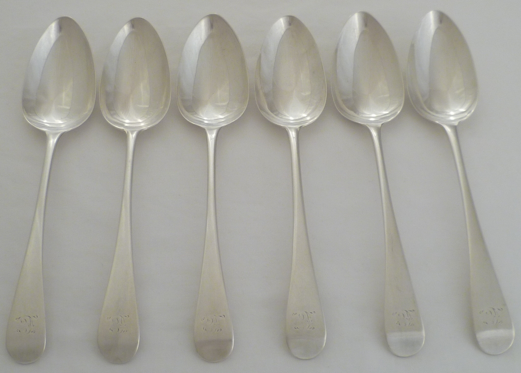 DESCRIPTION | Set of six Georgian silver Old English pattern table spoons with frontal engraved 'C'. |