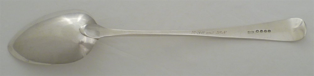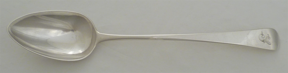 DESCRIPTION | Very good, large and heavy Georgian silver Old English pattern basting spoon with a frontal initial engraving and initials mid-stem verso. |
