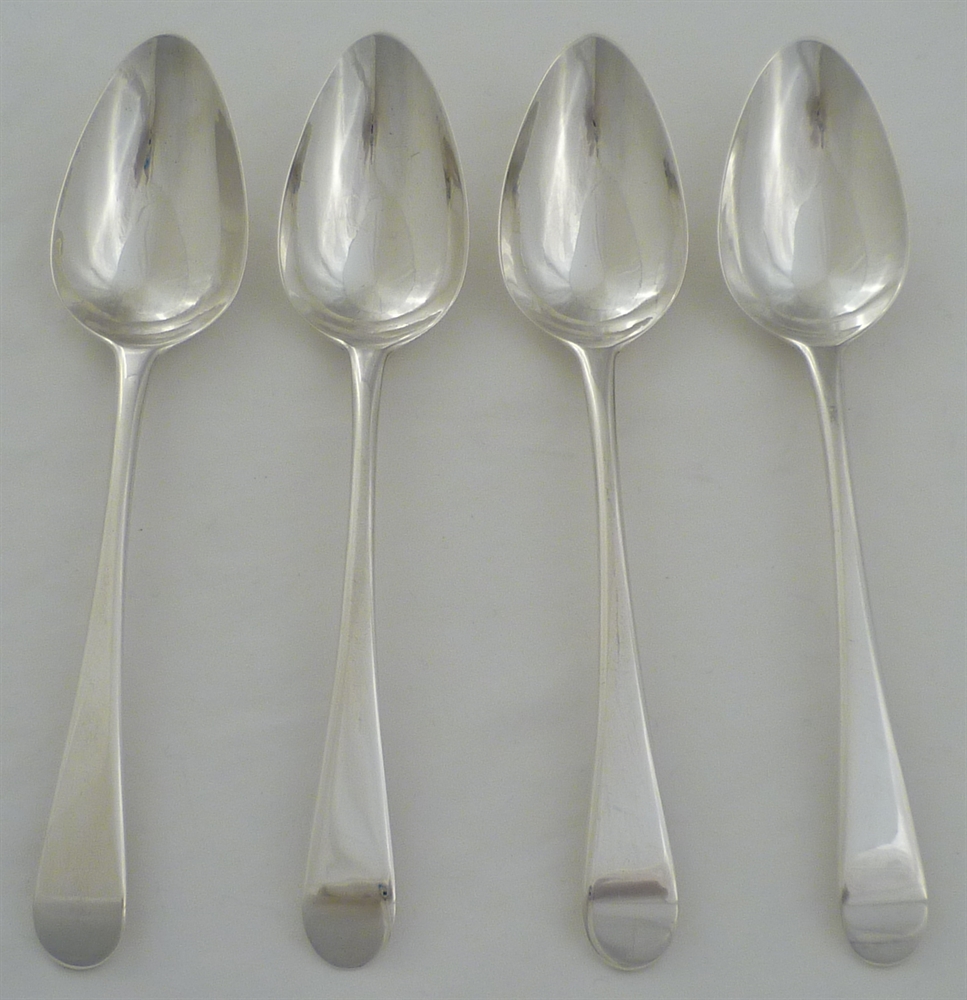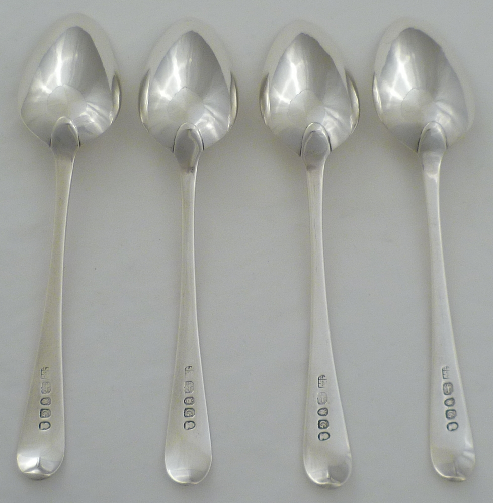 DESCRIPTION | Four Georgian silver Old English pattern dessert spoons with no engraving. |