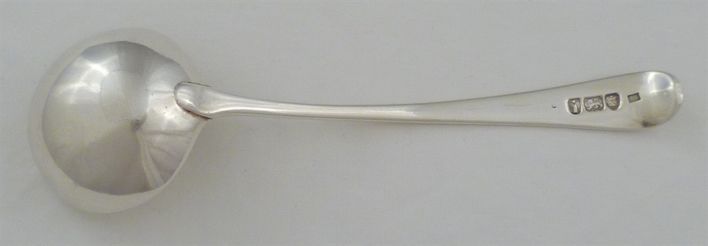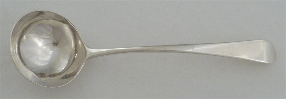 DESCRIPTION | Georgian silver Old English pattern sauce ladle with a circular bowl and no engraving. |