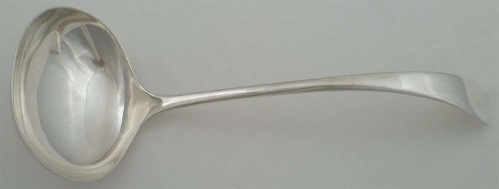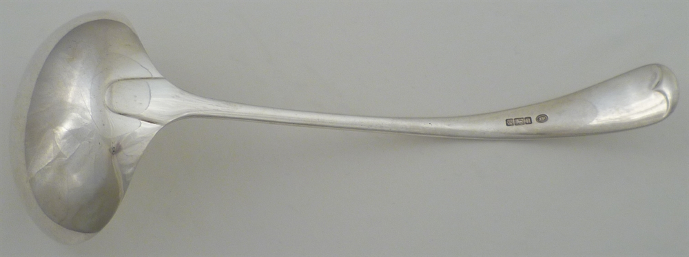 DESCRIPTION | Edwardian solid silver Old English pattern soup ladle with no engraving or erasure. |