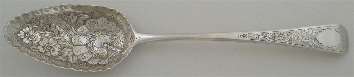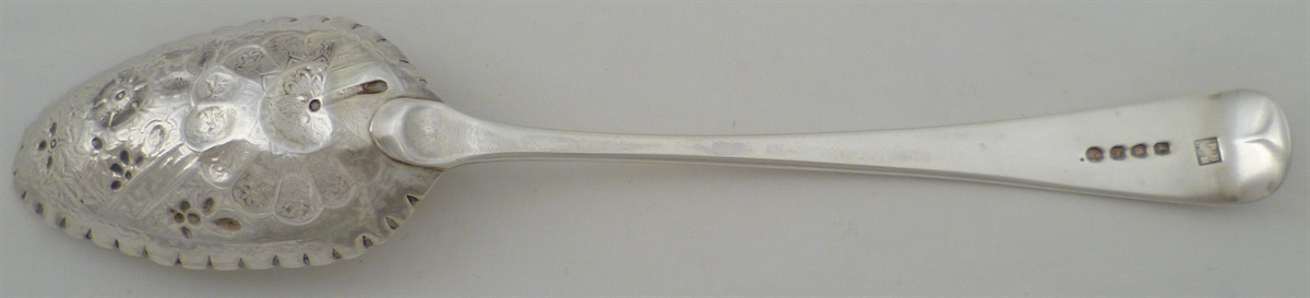 DESCRIPTION | Good Georgian silver Old English pattern 'berry' spoon. matches m6750 |