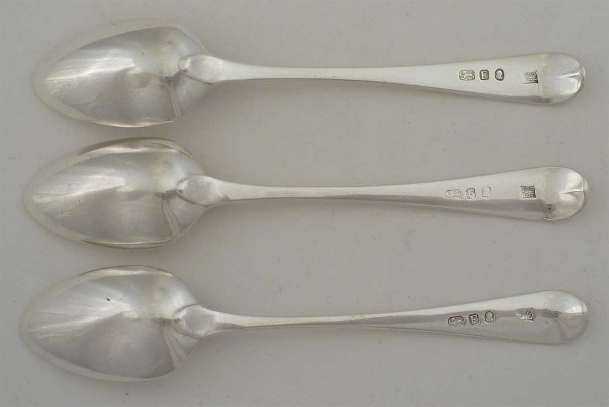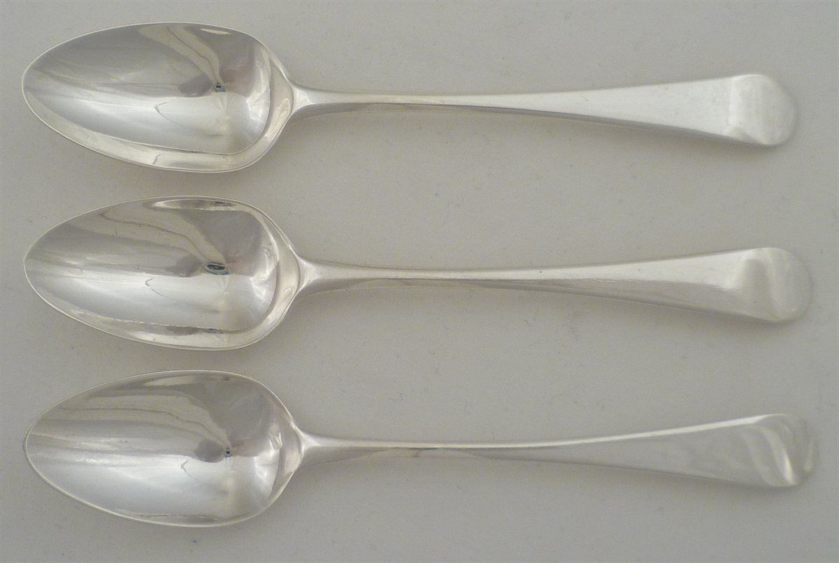 DESCRIPTION | Three Georgian silver Old English pattern teaspoons with no engraving. |