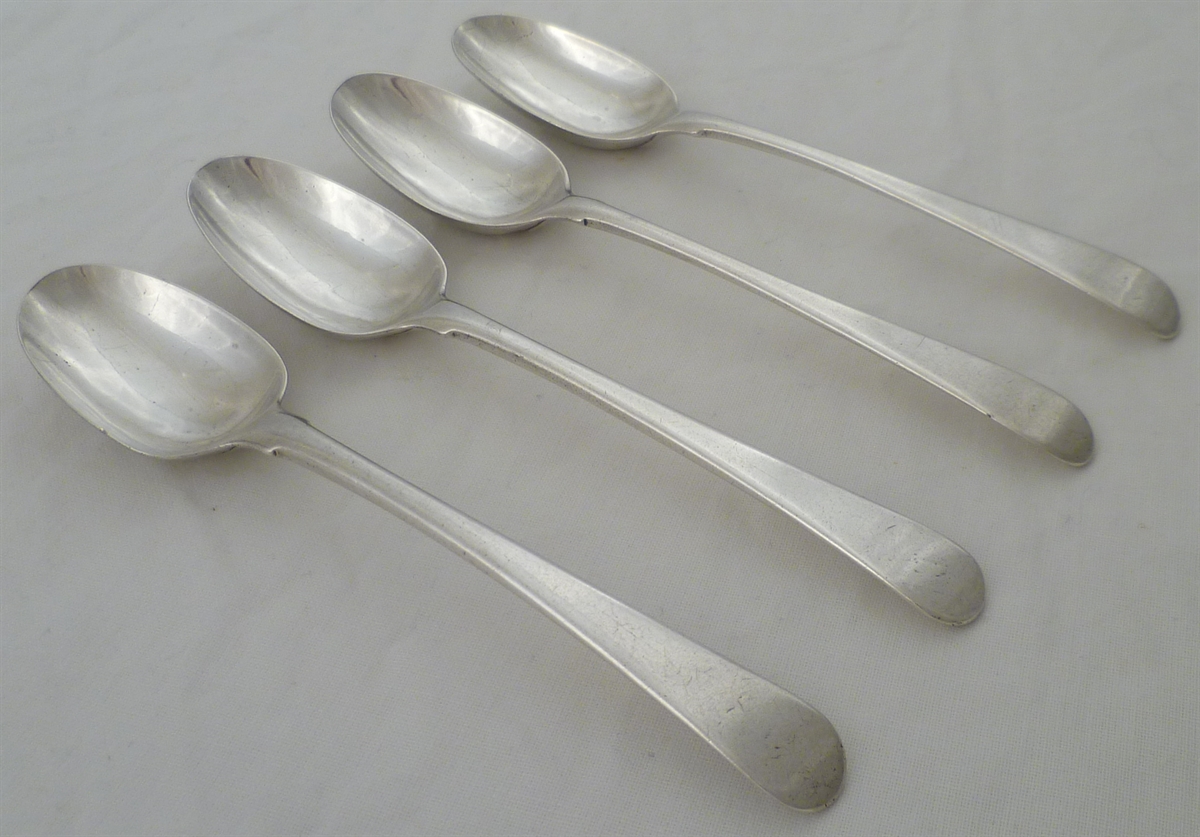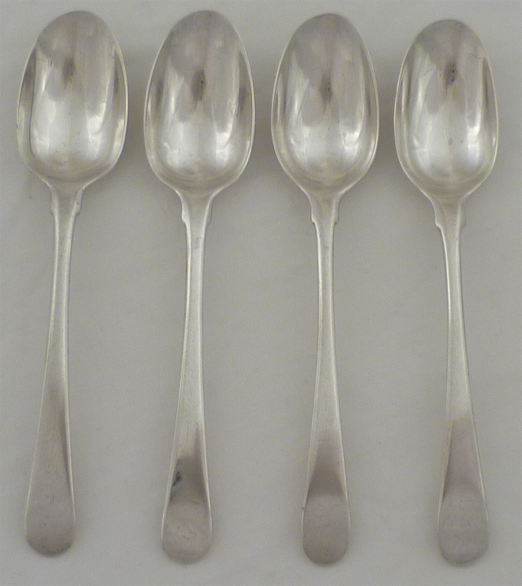 Four very rare Georgian silver Old English with Shoulders pattern teaspoons.