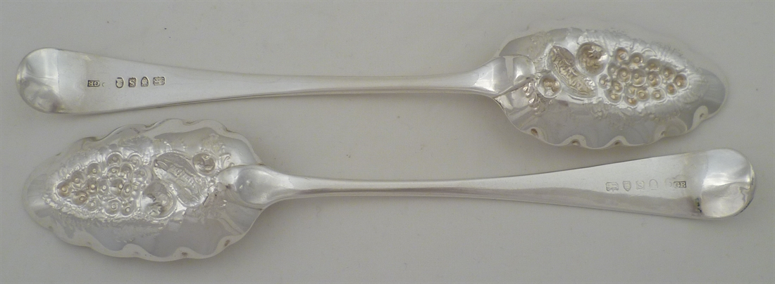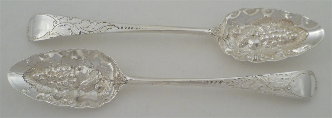 DESCRIPTION | Pair of Georgian solid silver Old English pattern 'berry' spoons. |