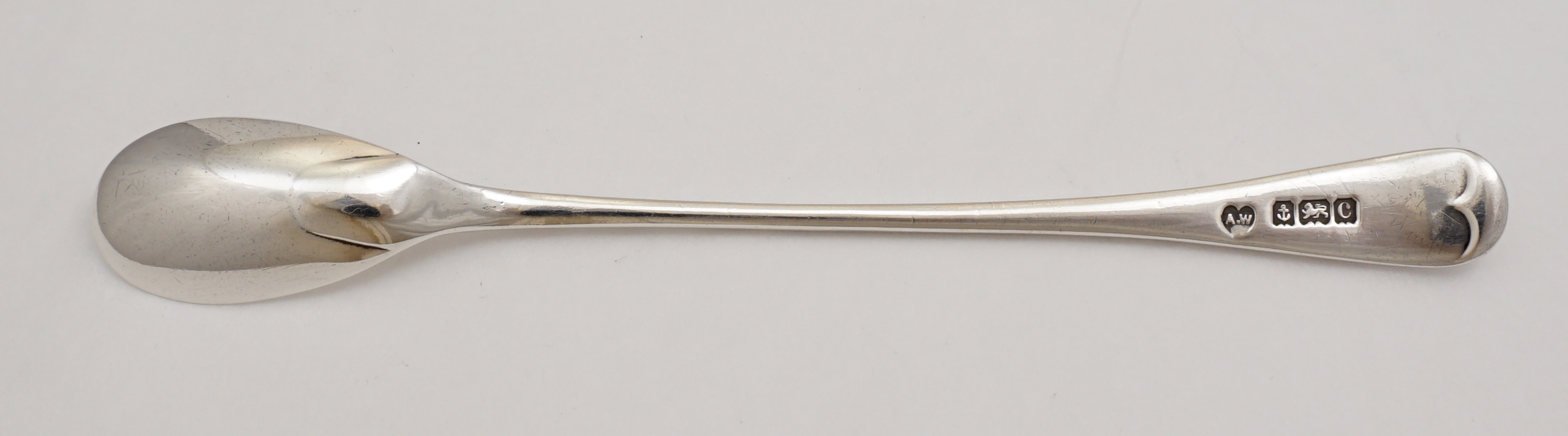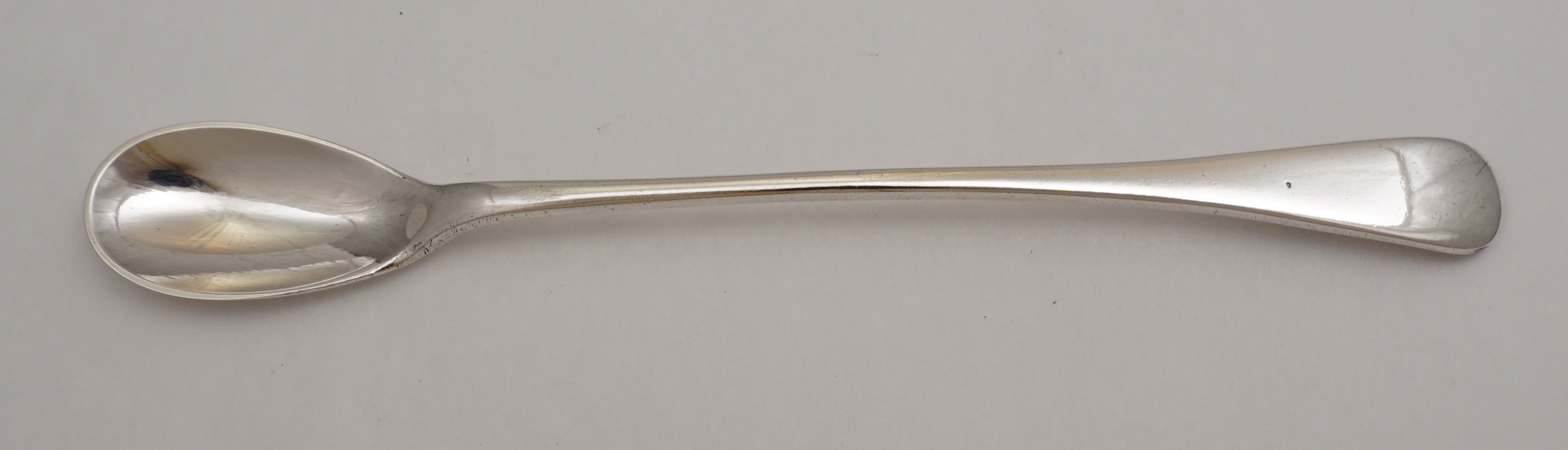 DESCRIPTION | Long stemmed antique English Edwardian solid sterling silver Old English pattern mustard ladle with no engraving or erasure. |