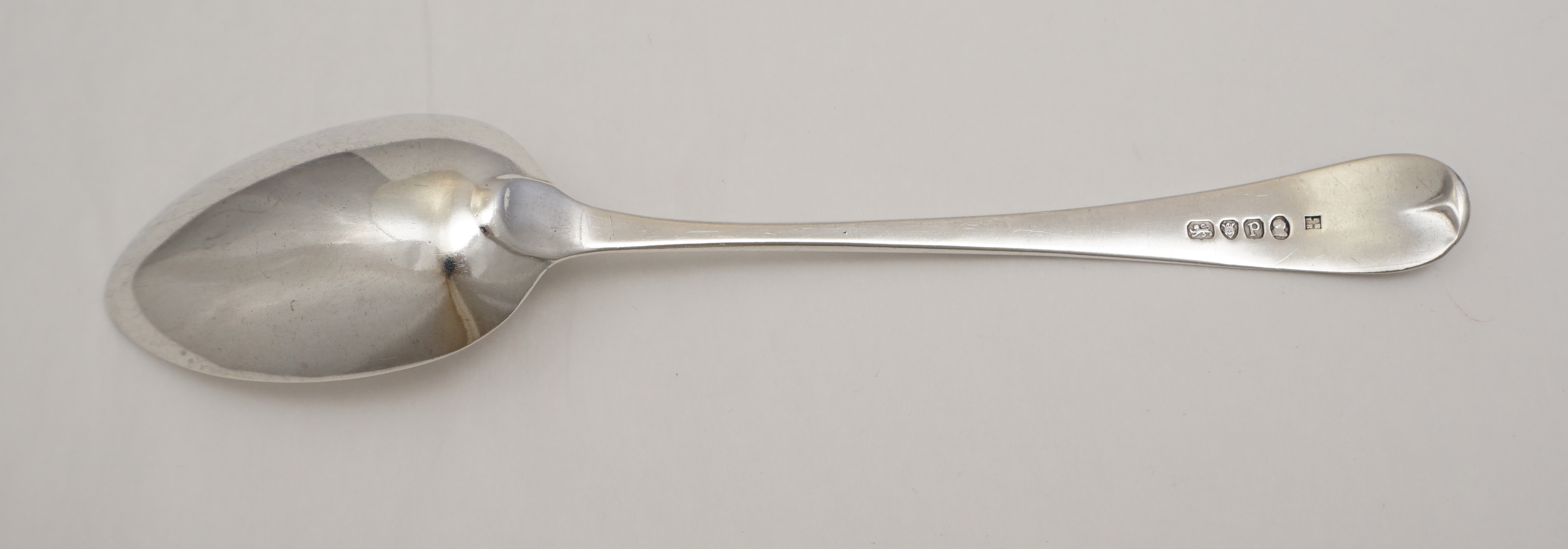 CONDITION | An ordinary Georgian silver table spoon in good condition with a few little bumps and minor surface marks. However, what makes this spoon important are the hallmarks, and they are all as clear as the day when they were struck. I usually have table silver cleaned and polished but in this instance I believe it better not to. |