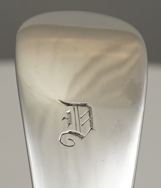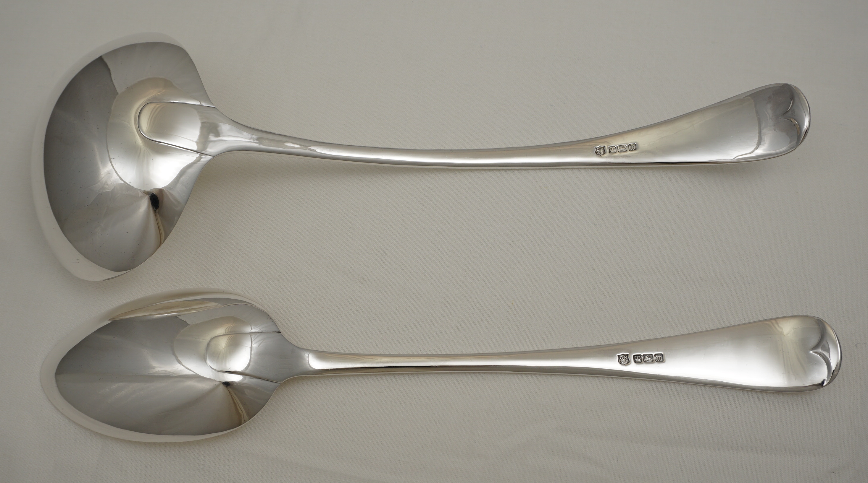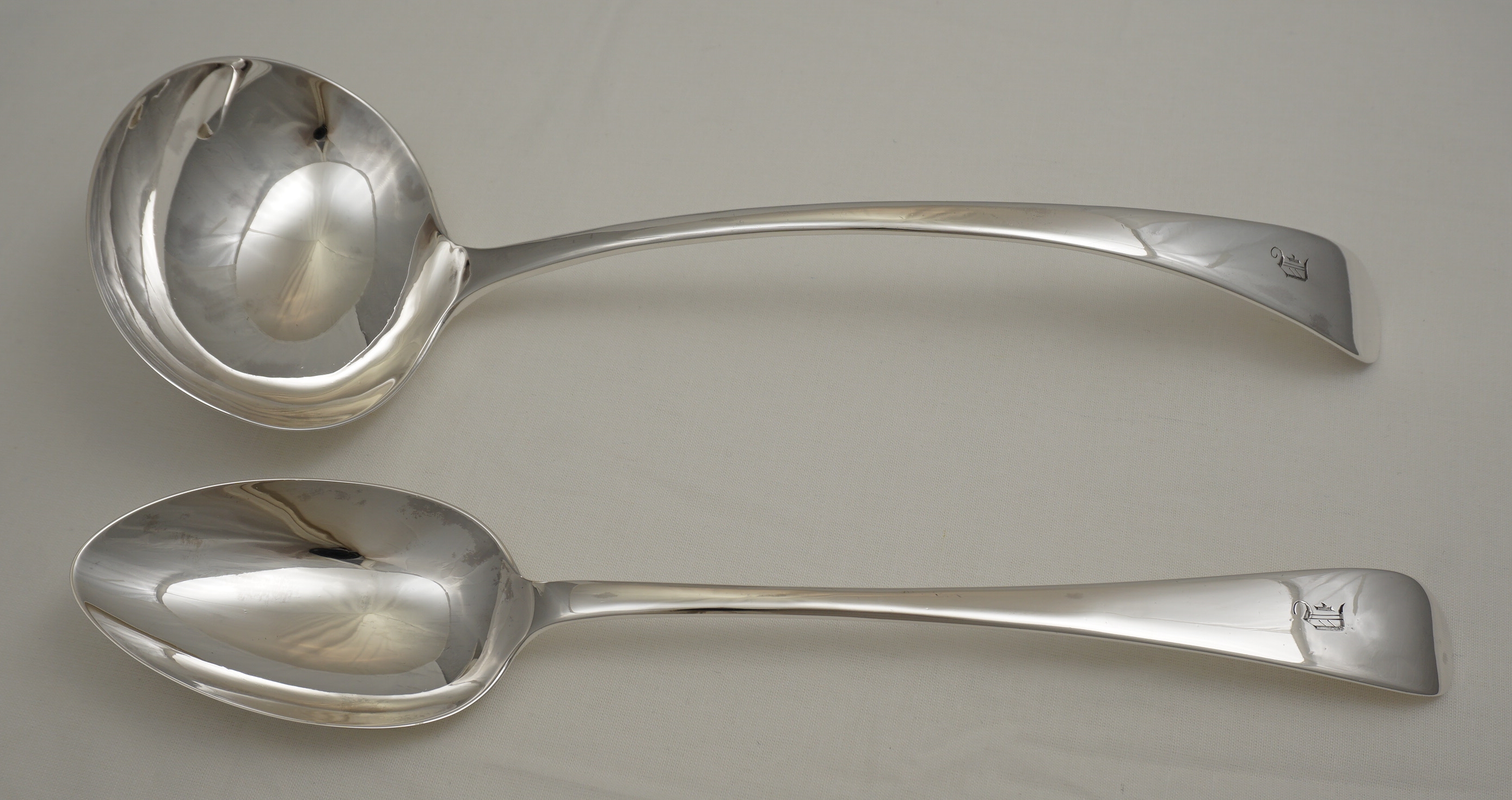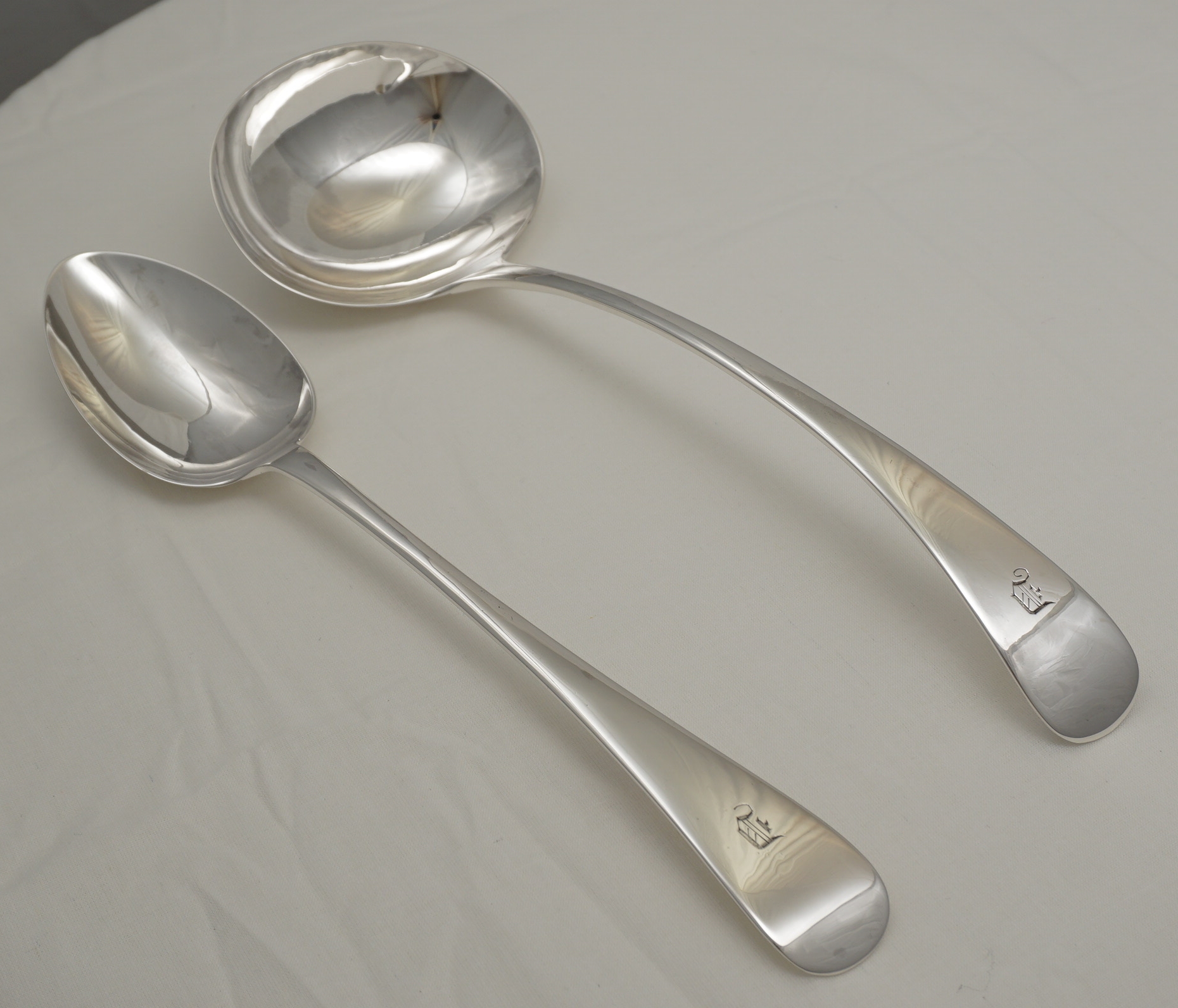 DESCRIPTION | Antique English solid sterling silver Old English pattern soup ladle and basting spoon with a frontal initial 'D' engraving. Although called basting spoons they are actually the perfect serving spoons. |