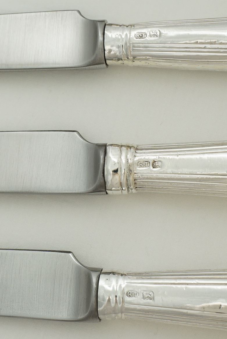 CONDITION | The three Sheffield 1776 have recently been restored to a high standard, the two London have had restoration in the past including the fitting of over collars that are now partly obscuring the hallmarks. These two also have some bumps and a couple of small splits to the terminal. All are complete with brand new blades and a fresh professional clean and polish so safe for use at table. Best not to clean in a hot dishwasher. |