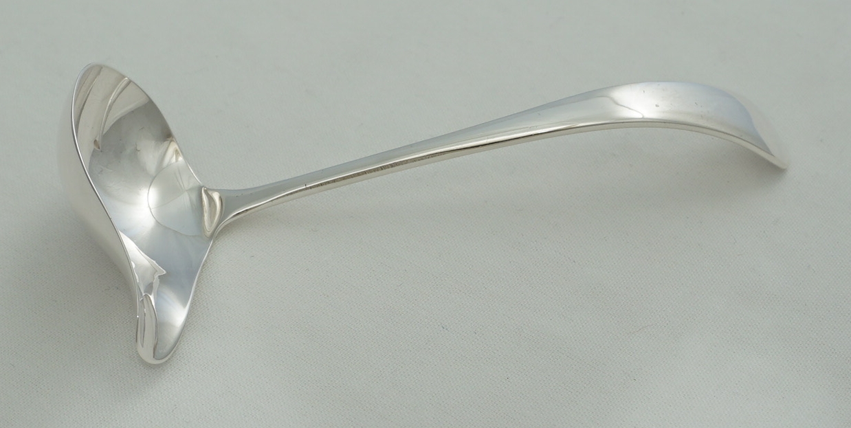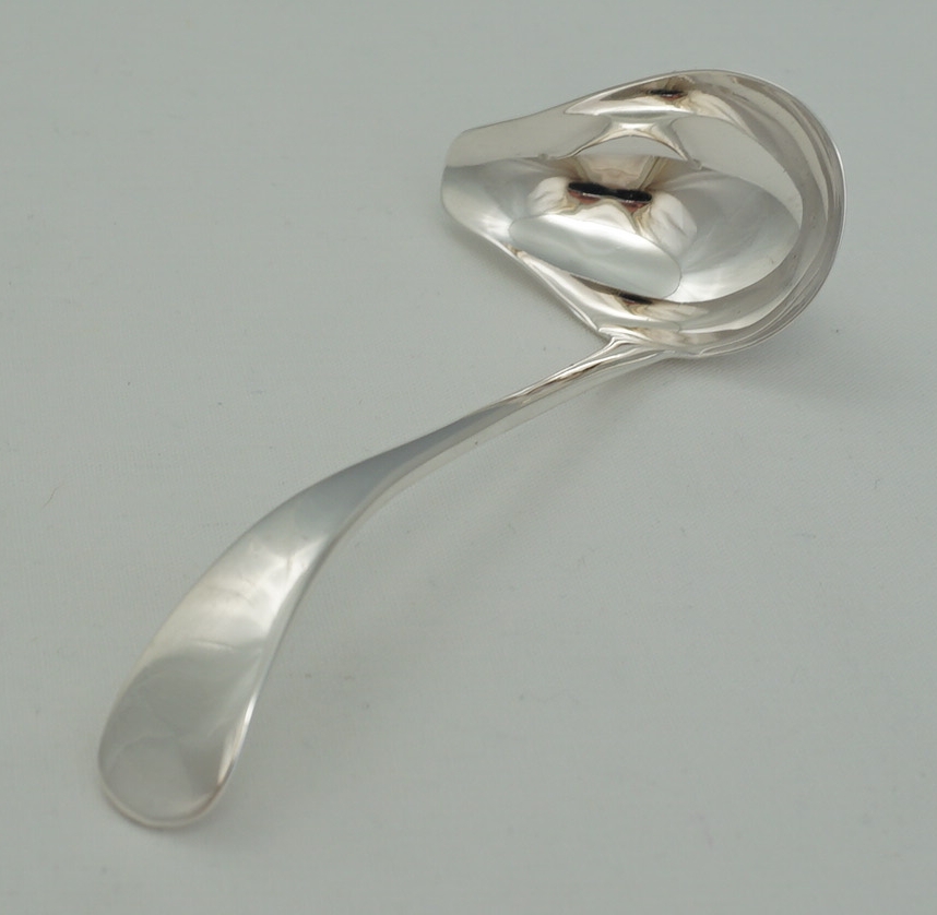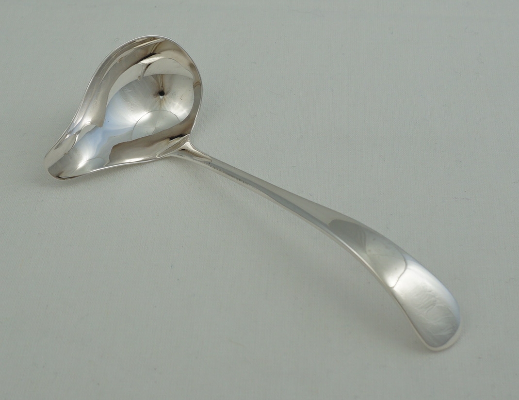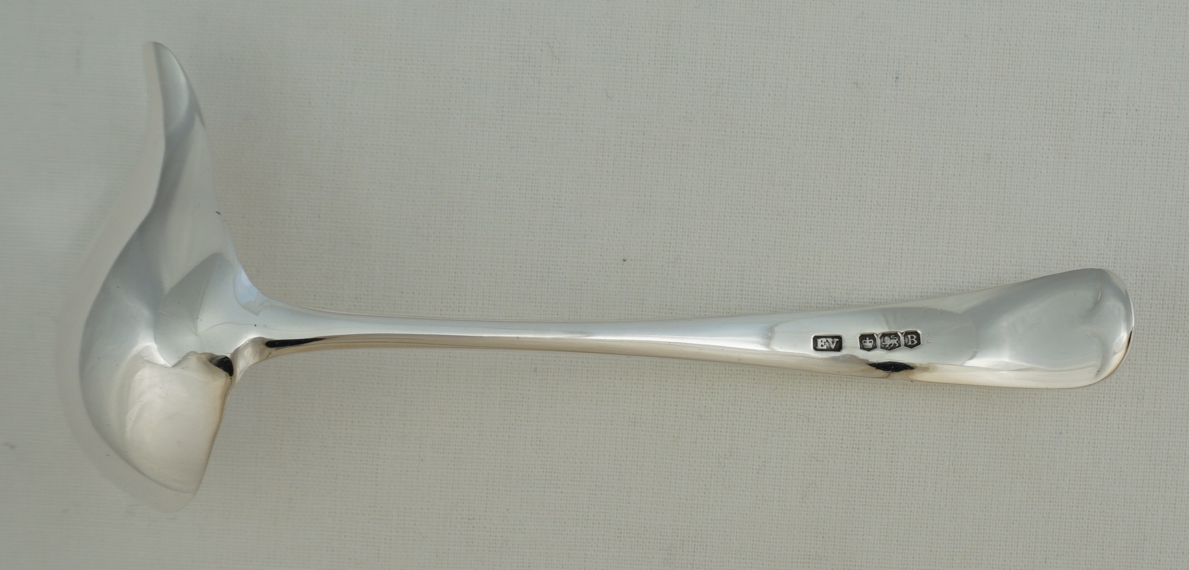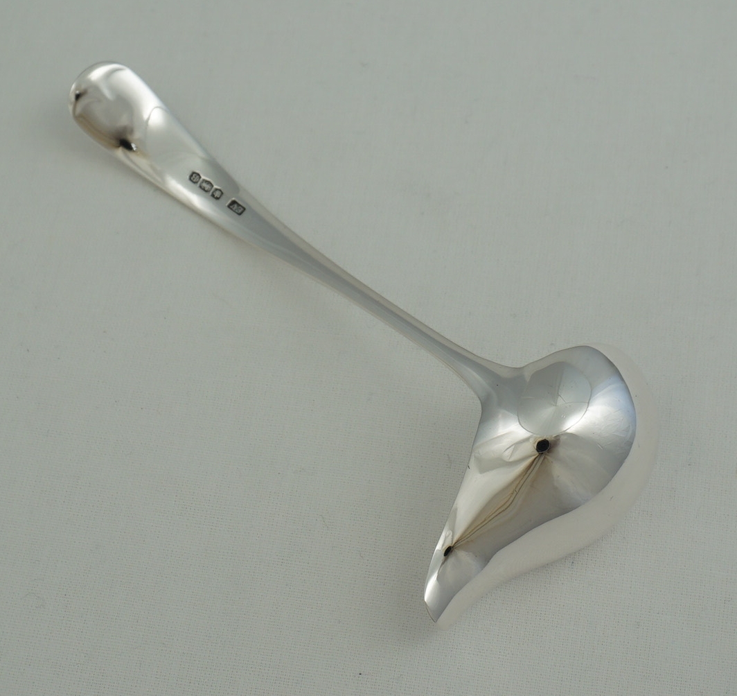 DESCRIPTION | Vintage English solid sterling silver Old English pattern cream ladle with a significant pouring lip. |