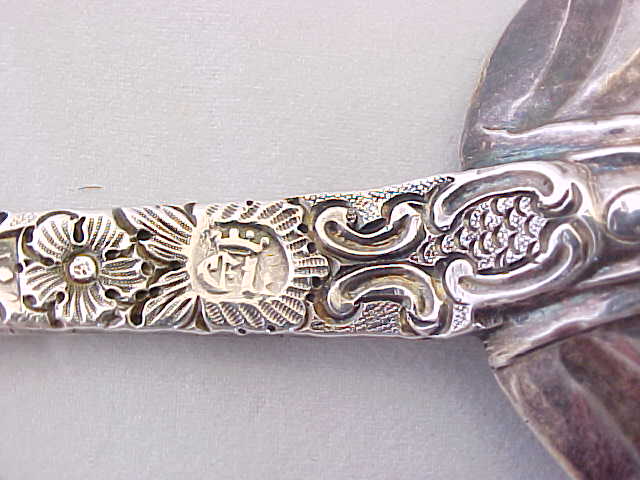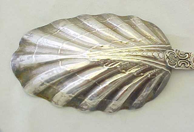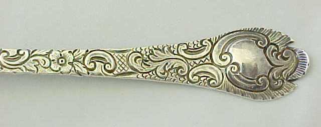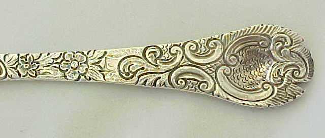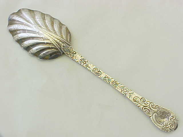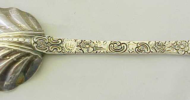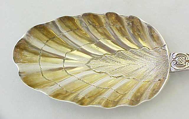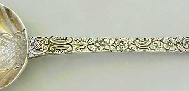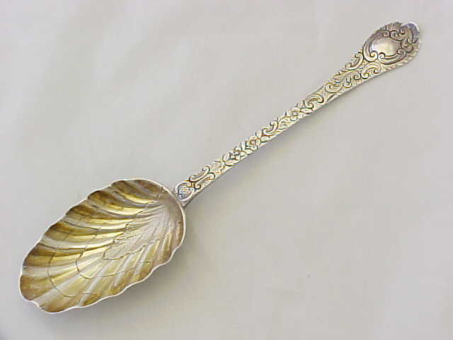 Very large Queen Anne silver trefid spoon with a beaded rat tail and later decoration and a fluted gilded bowl. |