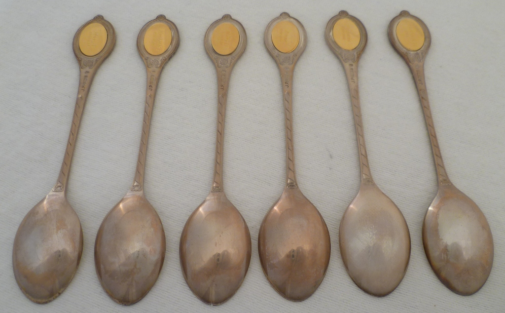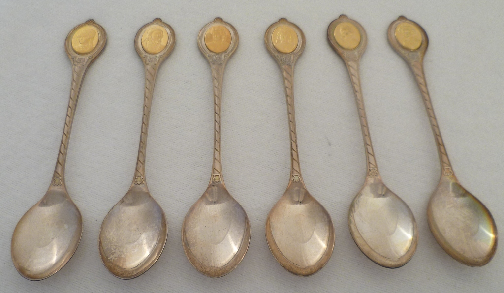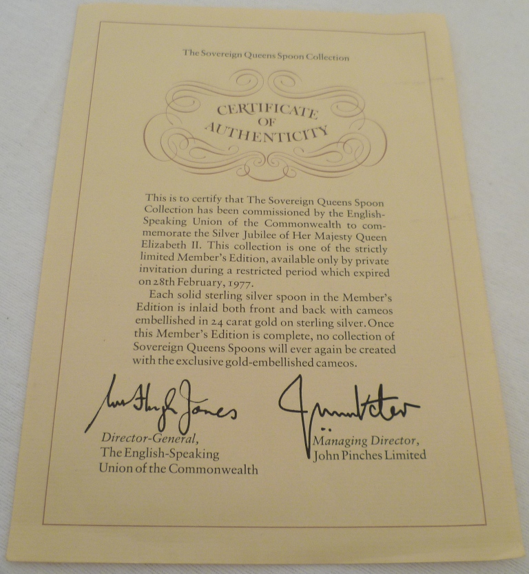 DESCRIPTION | Cased set of six silver gilt spoons issued in celebration of the Silver Jubliee in 1977 and marked with the optional additional punch. Complete with original certificate and booklet of abridged histories and contained within a wooded case finished in typical 1970s velour. |