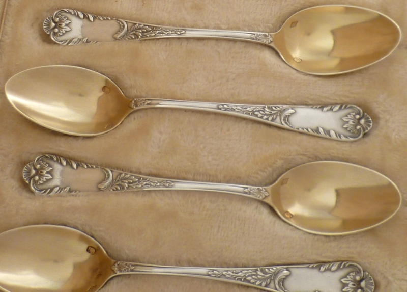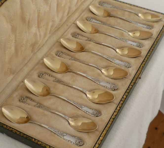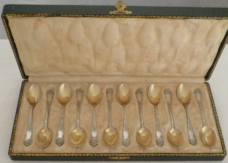 DESCRIPTION | Cased set of twelve very beautiful French high standard silver gilt spoons. |