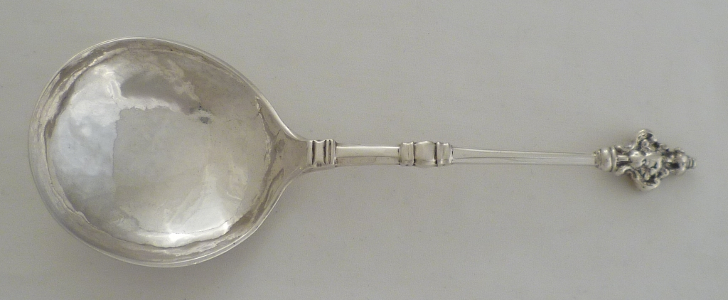 1800. The day I took possession of this supping spoon my eldest son passed his driving test so I bought us a bottle of schnapps to celebrate using this spoon and the silver gilt pedestal bowl