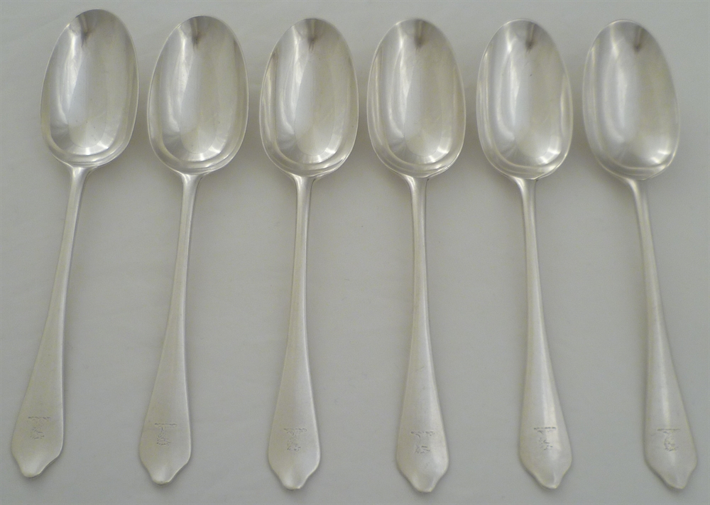DESCRIPTION | Set of six Victorian solid silver Dog Nose table spoons with a long rat tail to the bowl backs and frontal crest engraving. Matching pieces available, please email your requirements. |