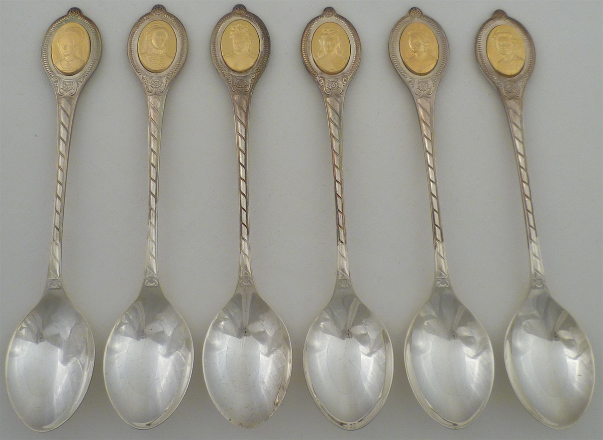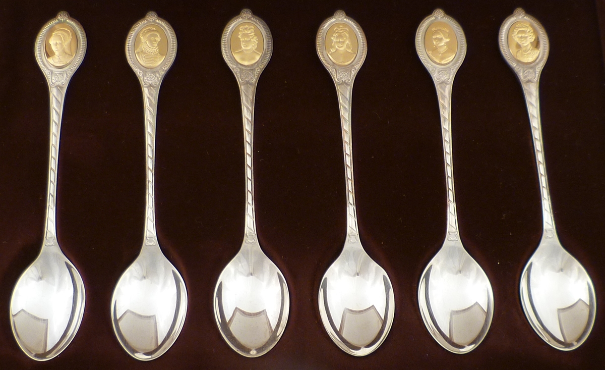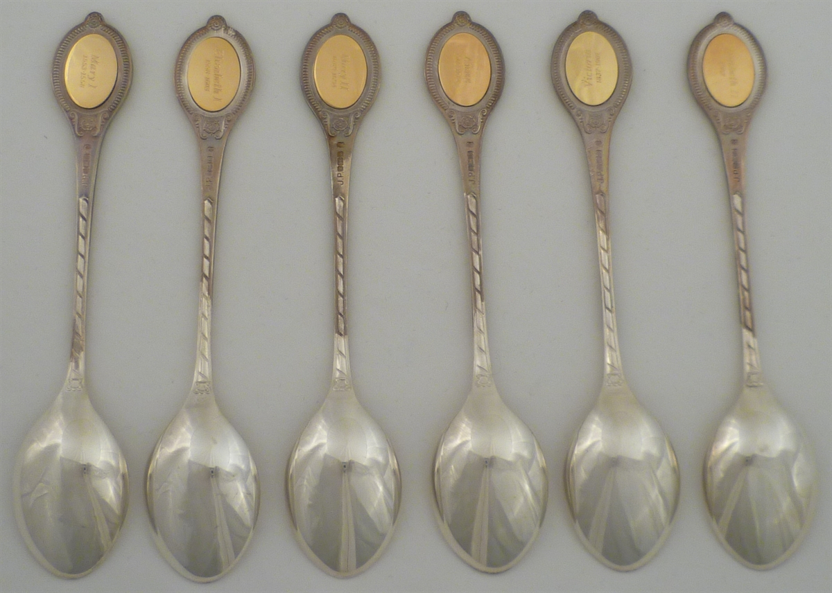 DESCRIPTION | Cased set of six silver gilt spoons issued in celebration of the Silver Jubliee in 1977 and marked with the optional additional punch. Complete with original certificate, booklet of abridged histories, other paraphernalia and contained within a wooded case finished in typical 1970s velour. |