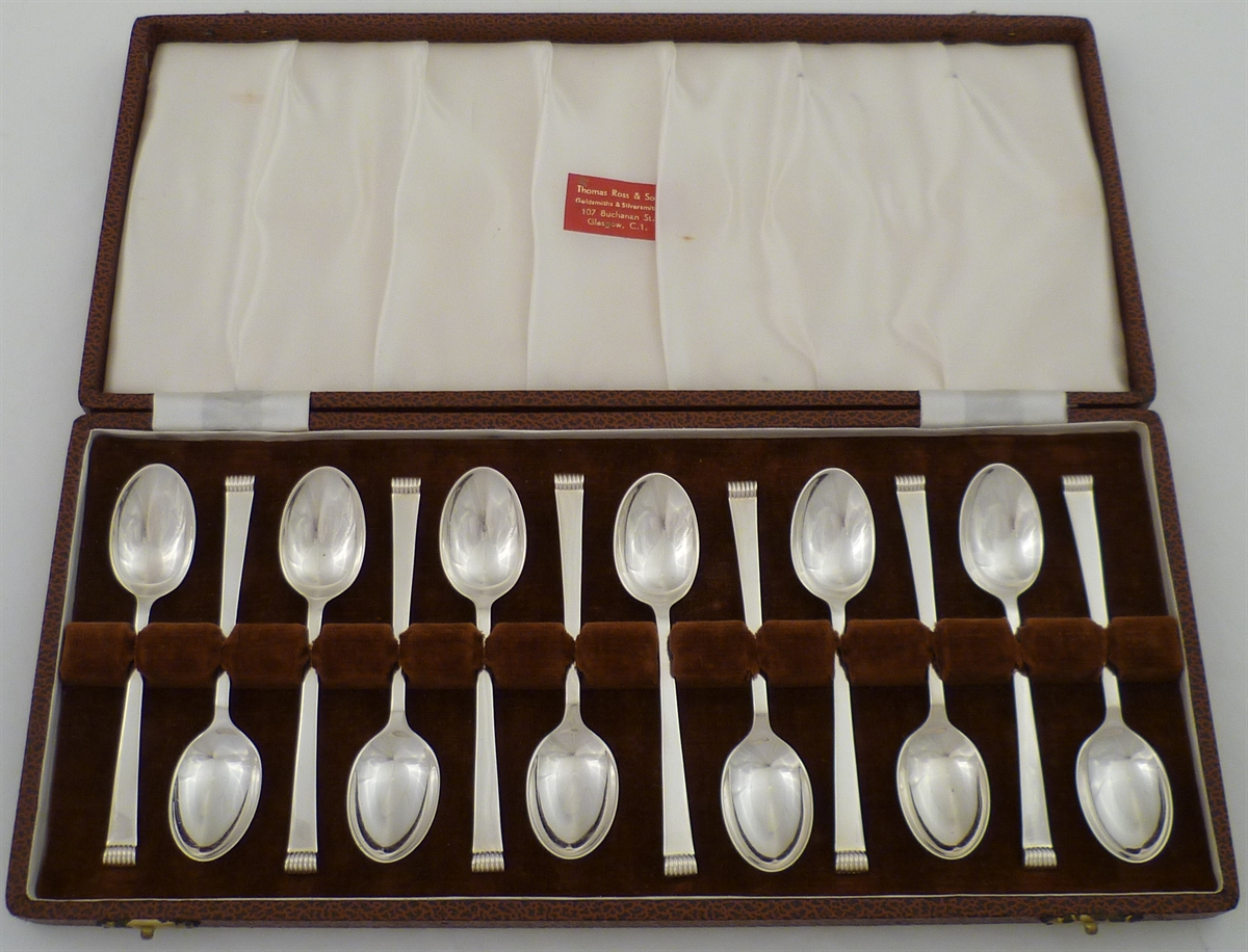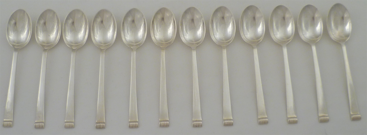 DESCRIPTION | Cased set of twelve solid silver coffee spoons. |