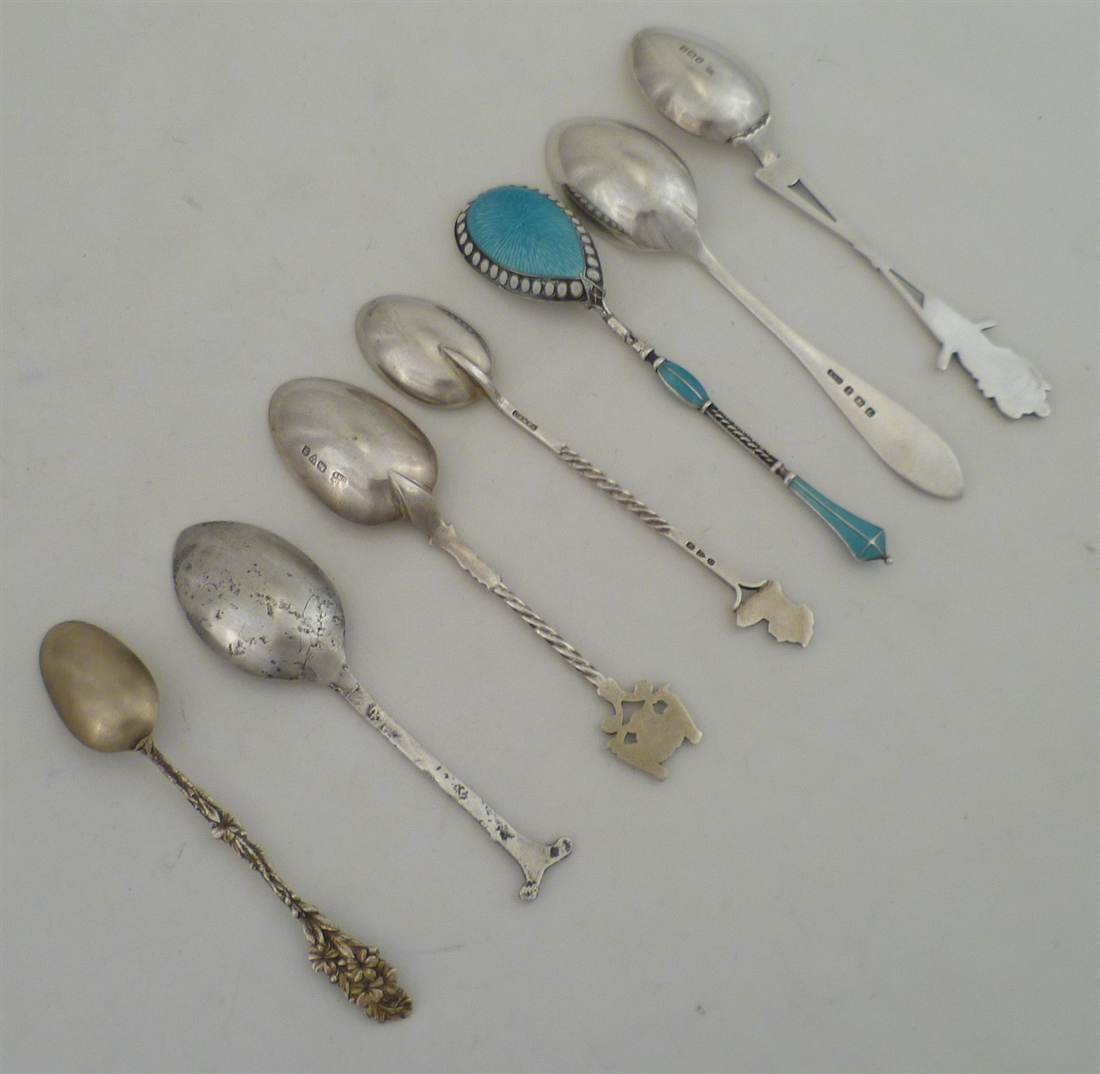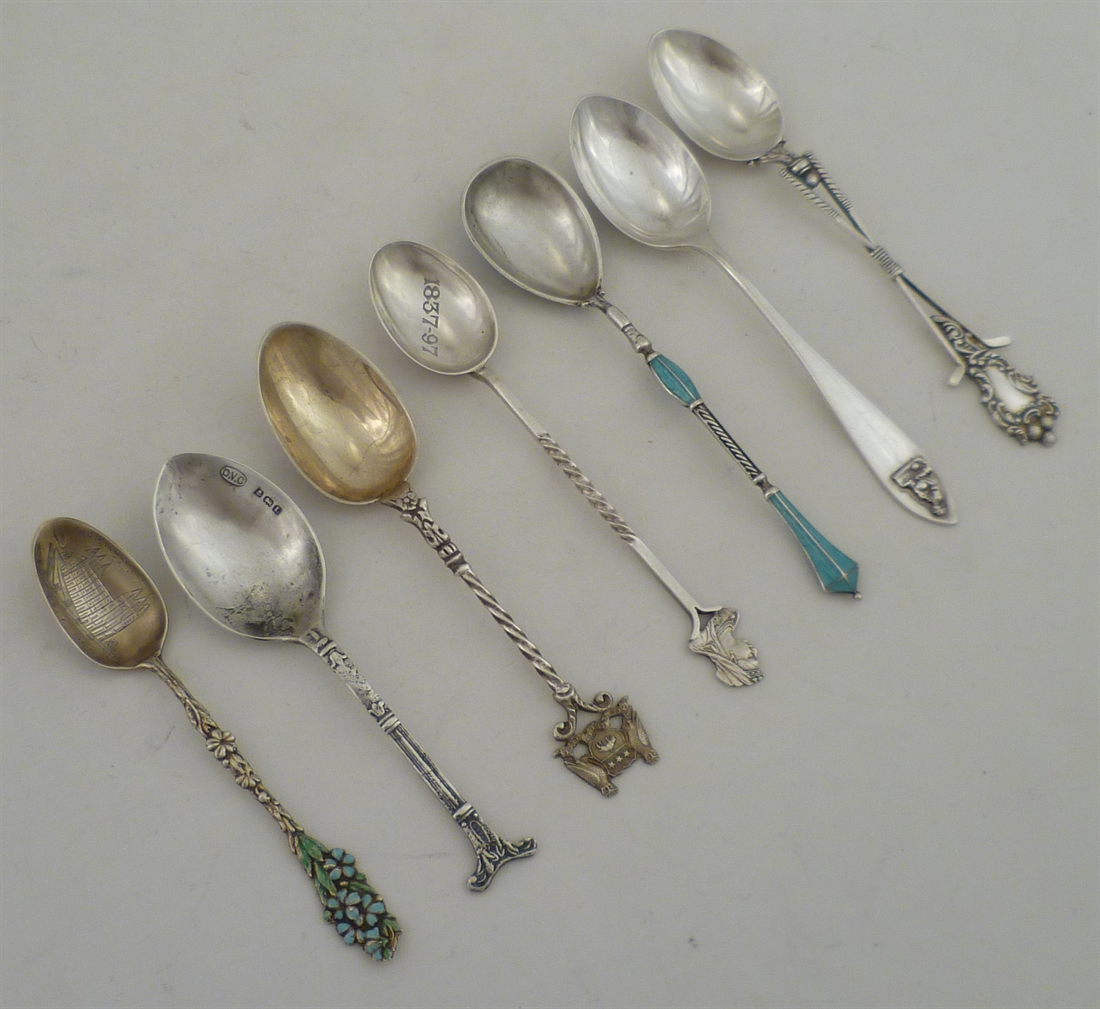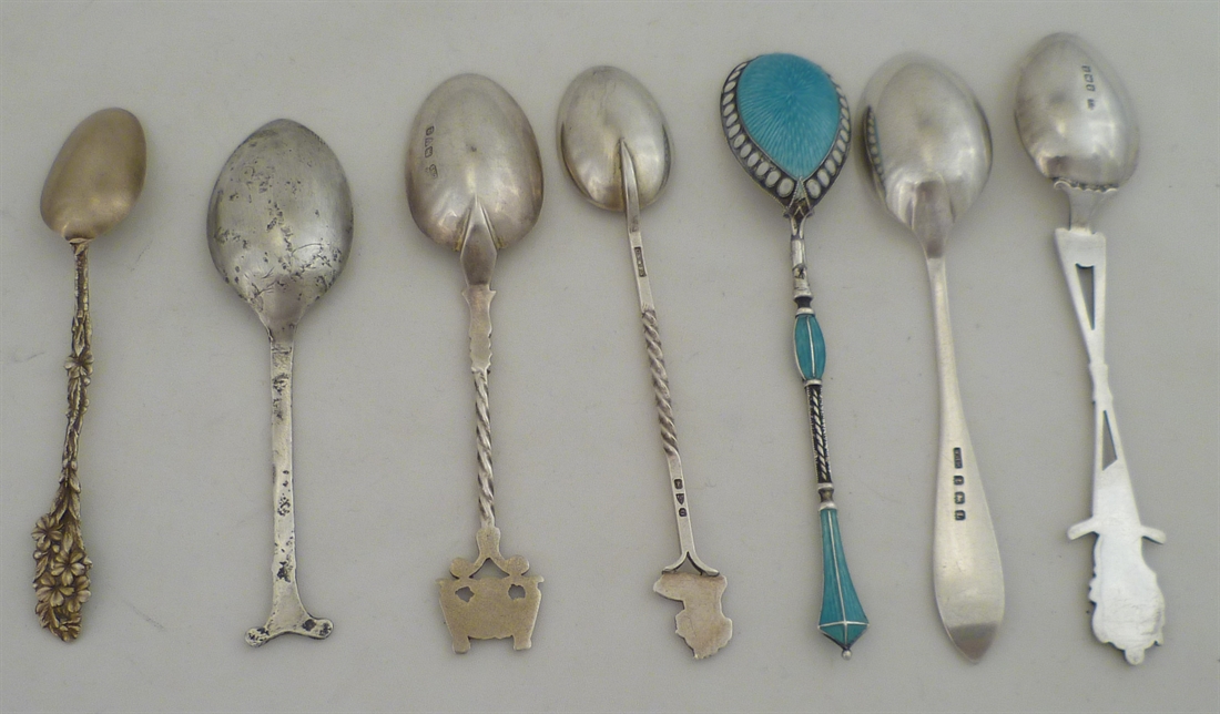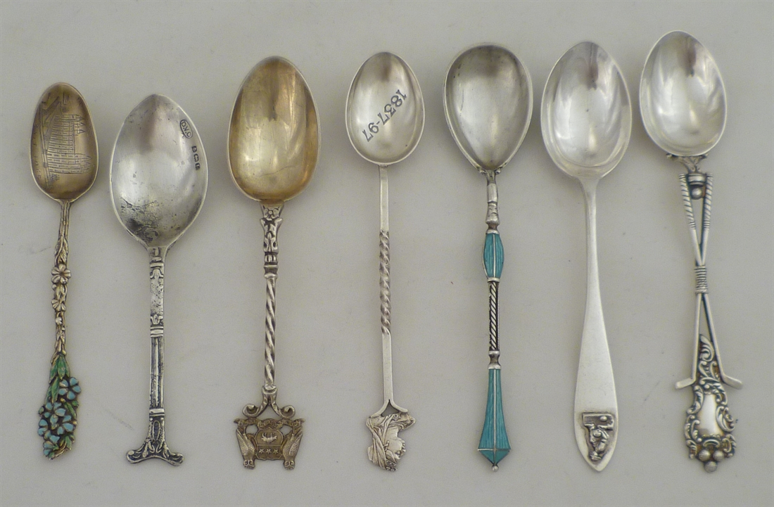 DESCRIPTION | Seven various silver decorative, commemorative or souvenir spoons. |