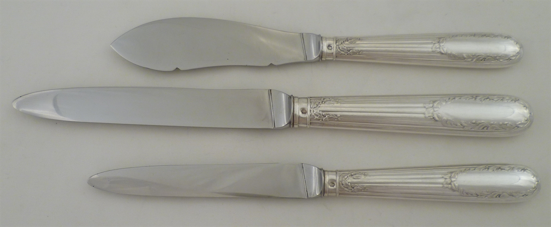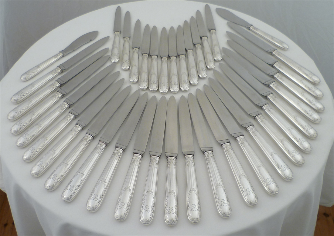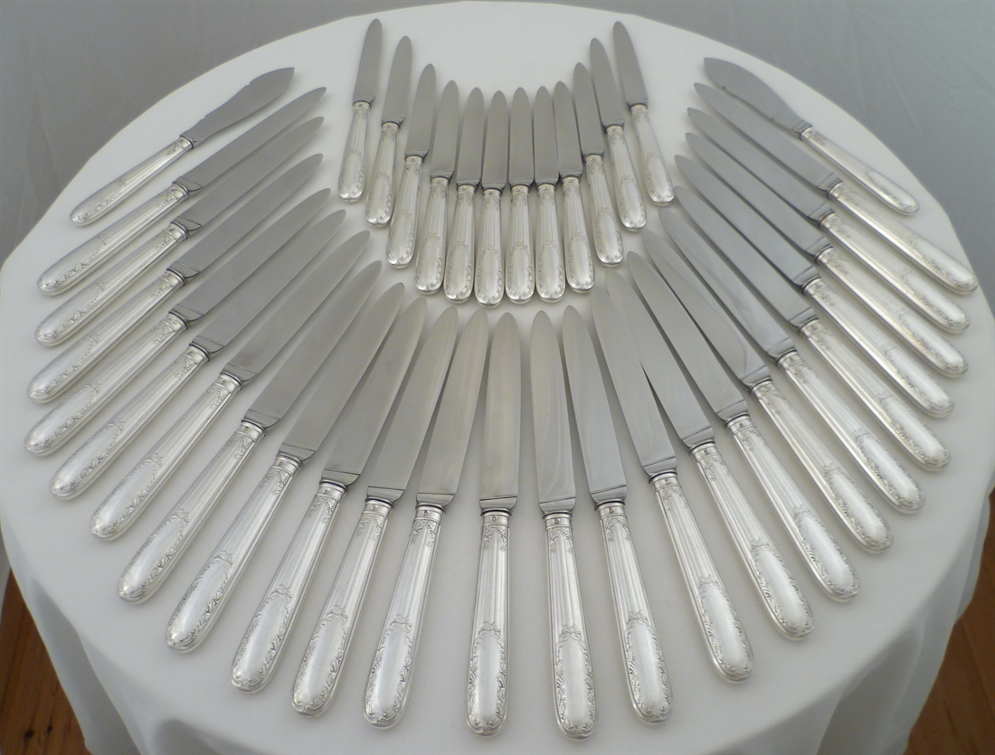 Superb collection of highest quality French loaded silver handled knives with stainless steel blades and a