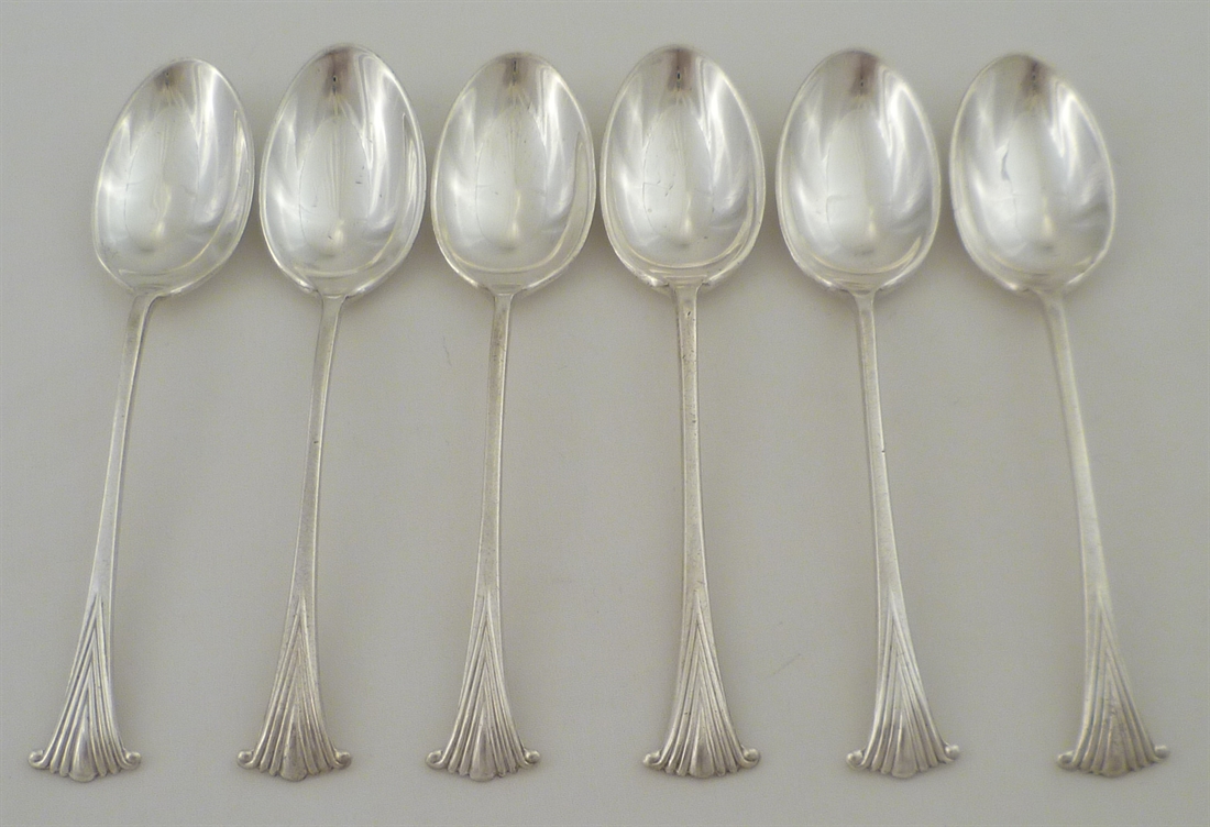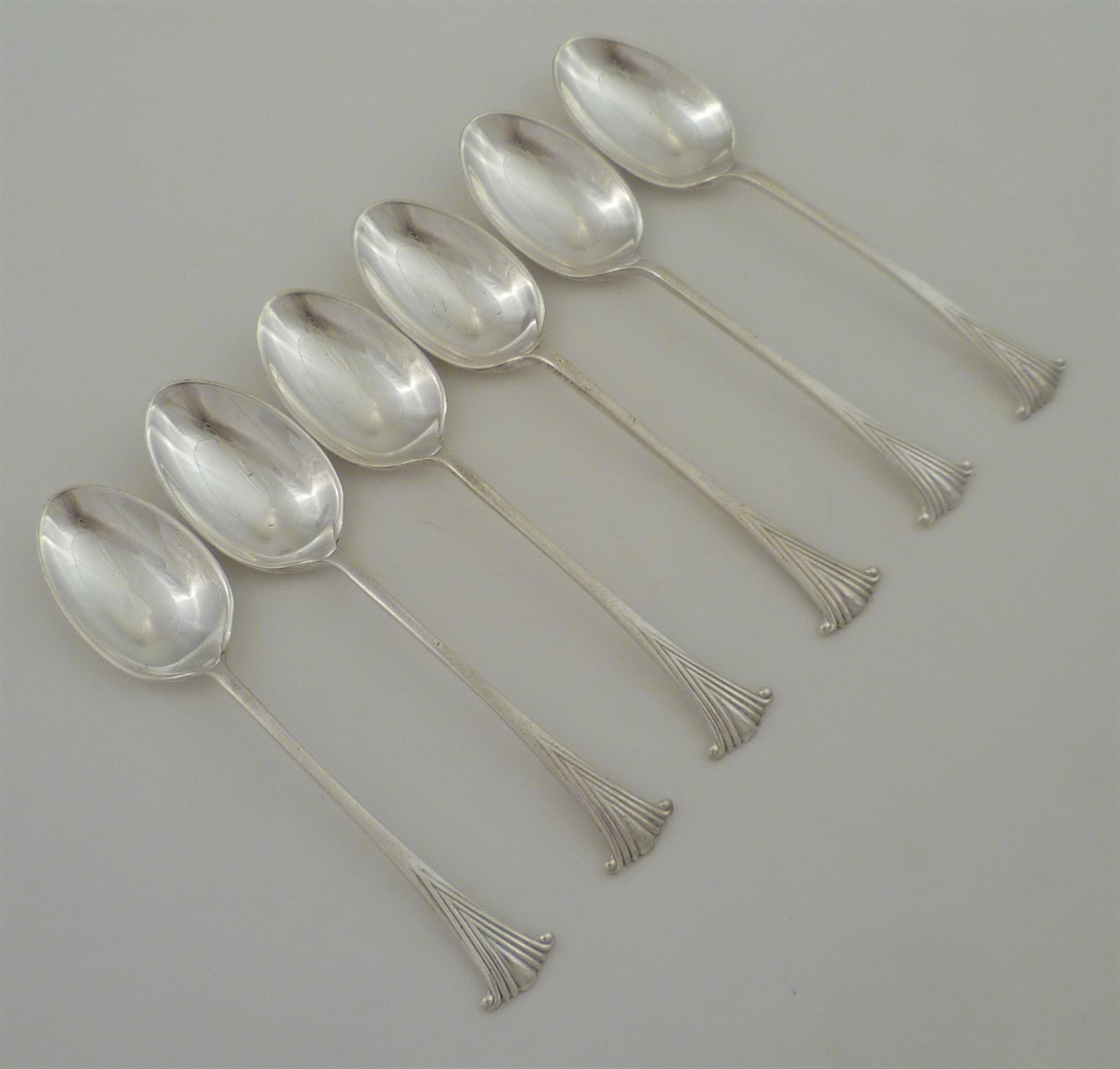 DESCRIPTION | Set of six solid sterling silver Onslow pattern coffee spoons. |