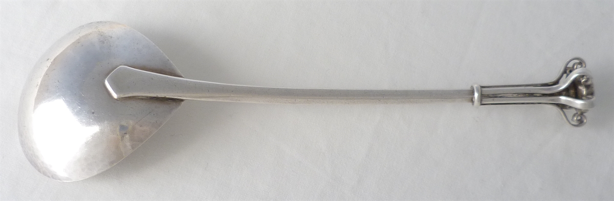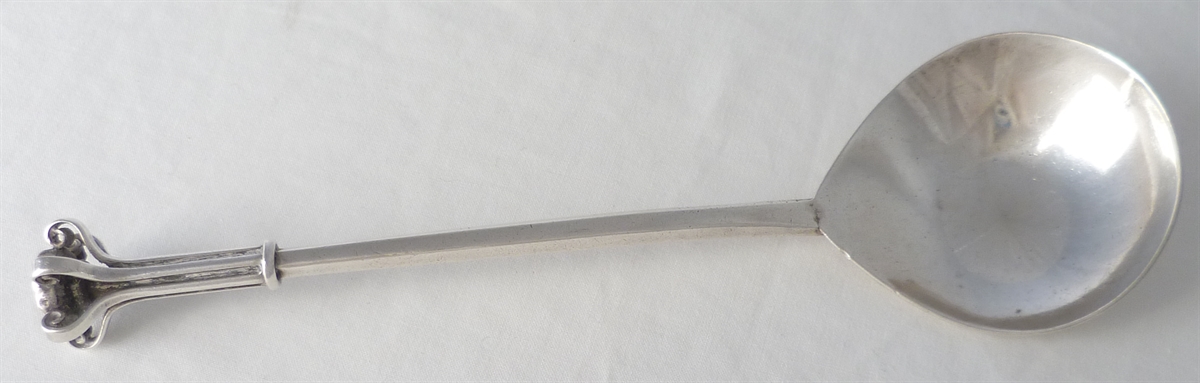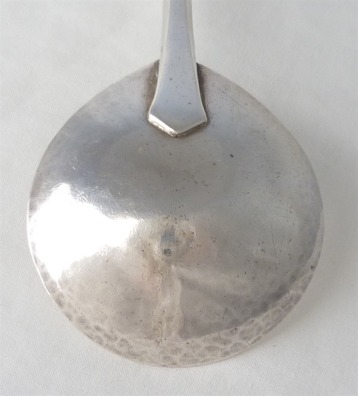 Hand made spoon, see the original hammer marks still present to the bowl back, that has been made traditionally in two parts. The bowl is made separate to the hexagonal section stem and drop and